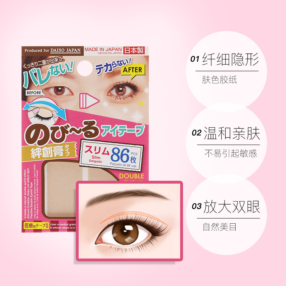 Наклейки на двойное веко DAISO 86 шт. Матовых наклеек на двойное веко телесного цвета стиль