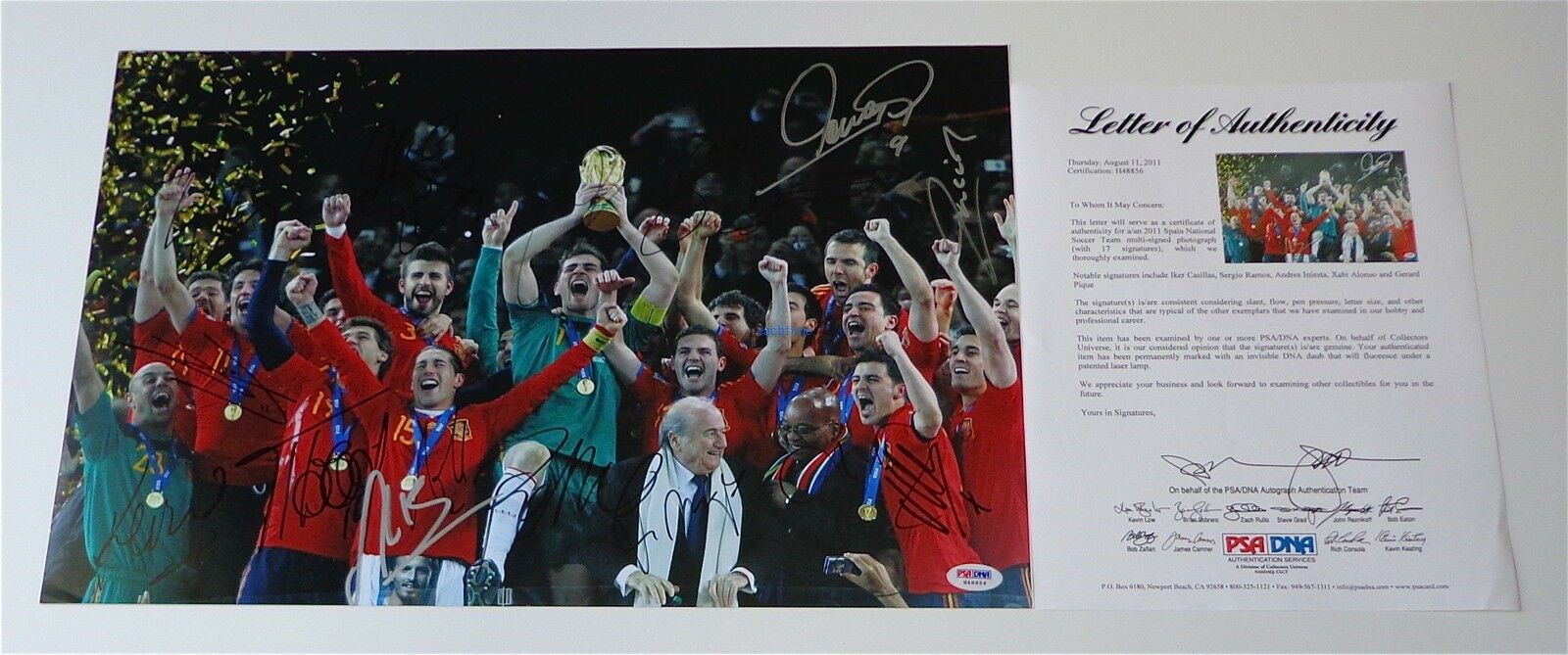 - Autograph By: VICENTE DEL BOSQUE, IKER CASILLIAS, PEPE REINA, ALVARO ARBEOLA, RAUL ALBIOL, SERGIO RAMOS, GERARD PIQUE, CARLOS MARCHENA, JOAN CAPDEVILA, XABI ALONSO, SERGIO BUSQUETS, ANDRES INIESTA, DAVID VILLA, DAVID SILVA, FERNANDO LIORENTE, FERNANDO TORRES AND PEDRO RODRIGUEZ