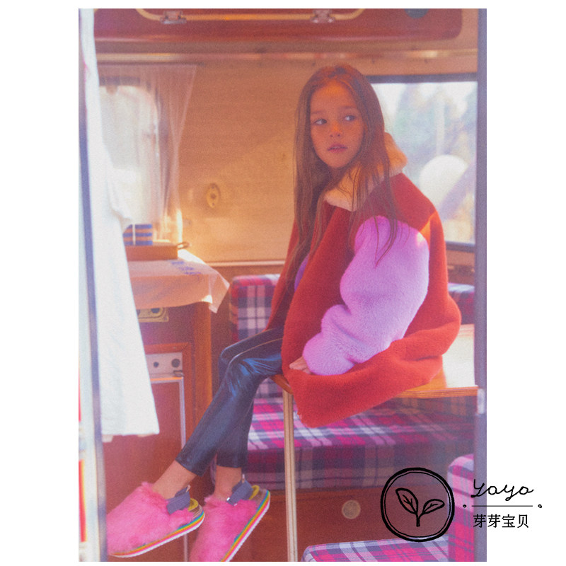 66 Невозвратный бутон бутон беби JELLY MALLOW 19 на девочку Пушистый лацкан колор-блок теплый пальто