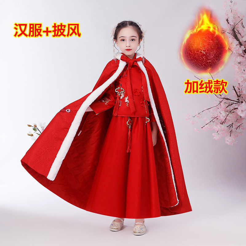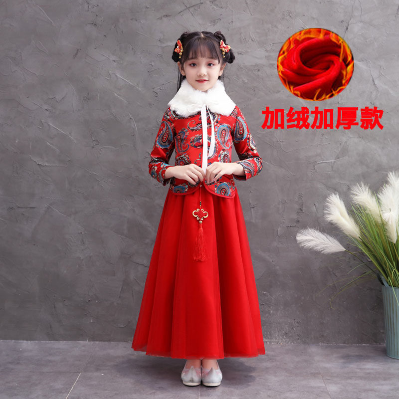 На девочку Hanfu осень-зима новая коллекция Платье для маленькой принцессы юбка детские западный стиль замшевый утепленный Китайское новогоднее платье