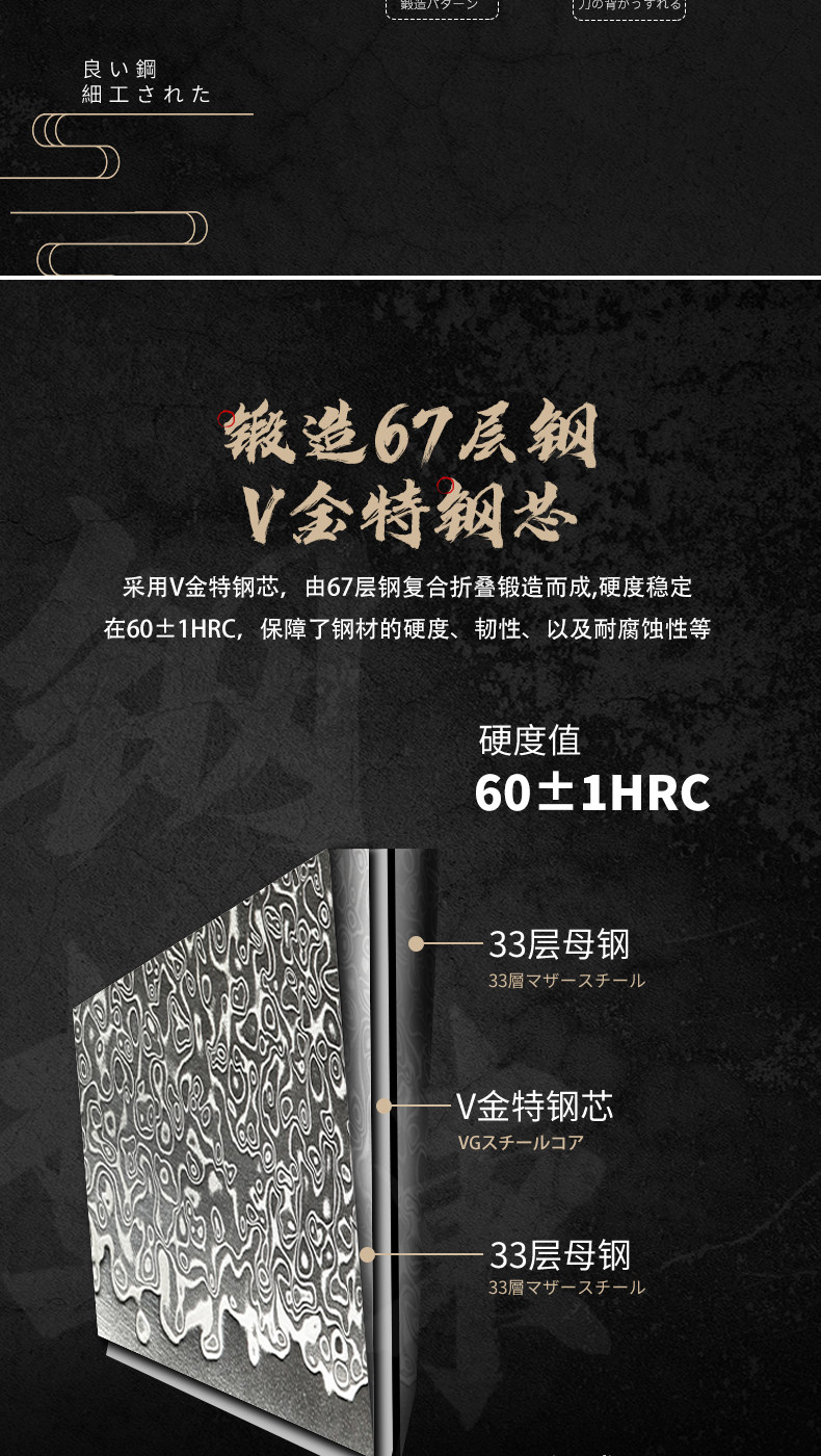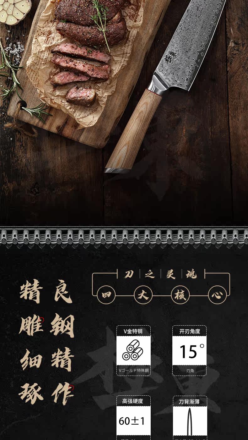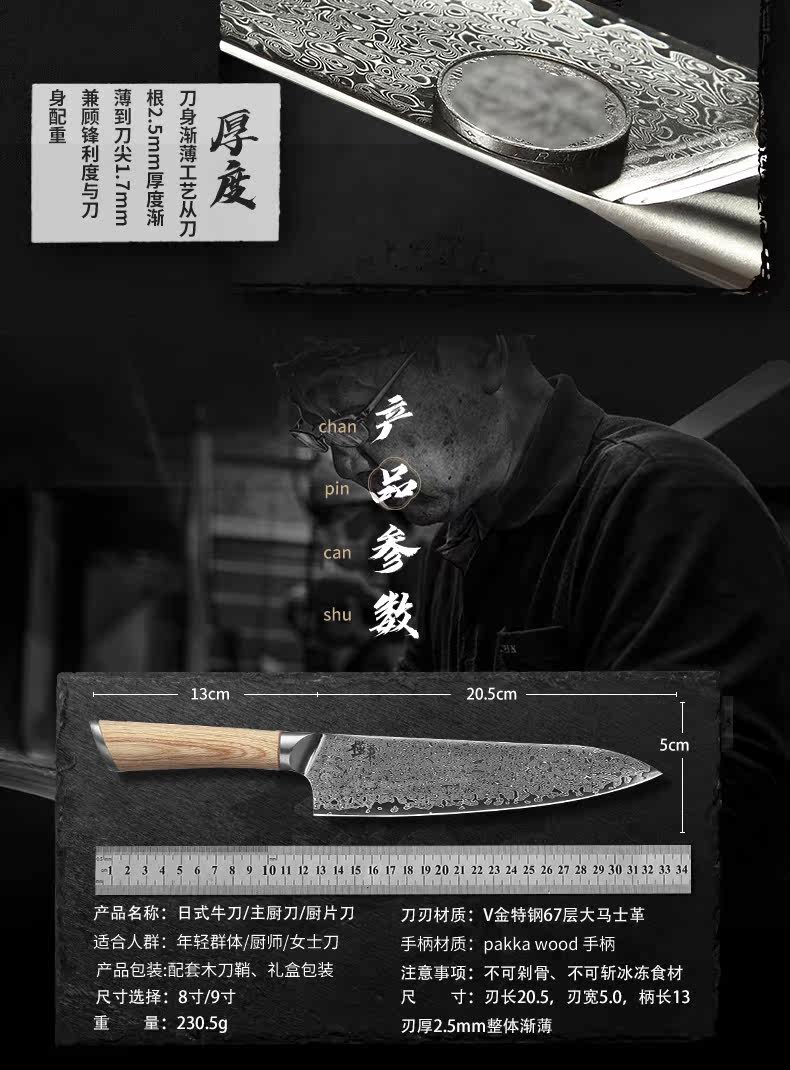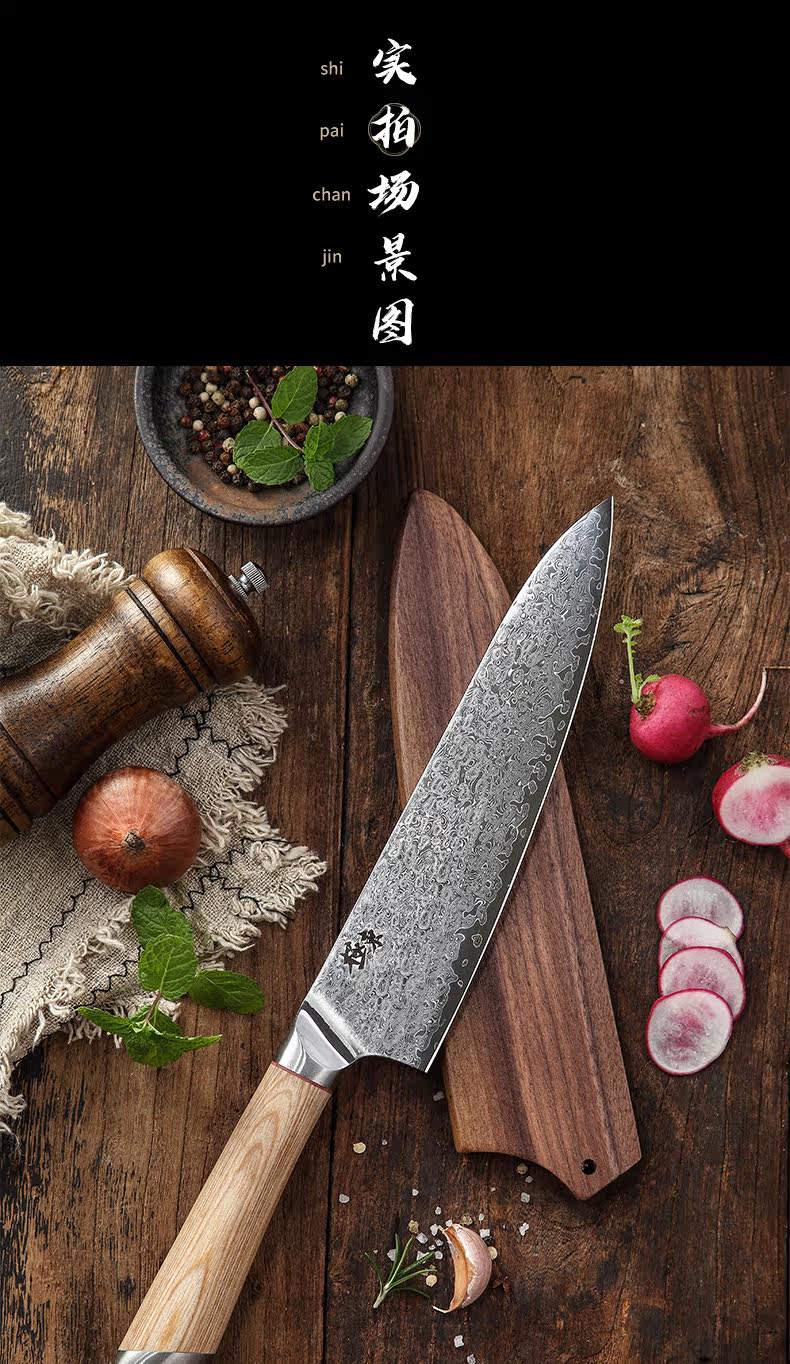 67-этажный Damascus Steel V Золотая корова Нож для шеф-повара Многофункциональный шеф-повар Подкуроссий Профессиональный подарок Муджи