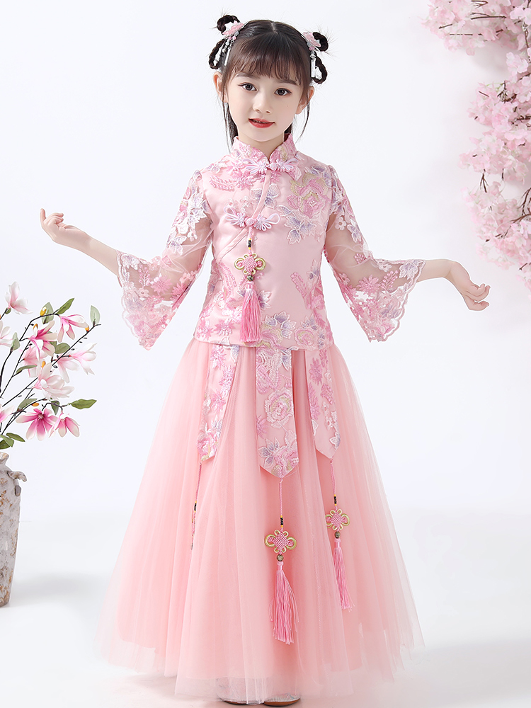 На девочку Ханьфу Маленькая девочка в китайском стиле 2021 новая коллекция детские Древний костюм летний костюм Тан Cheongsam супер юбка феи летнее платье