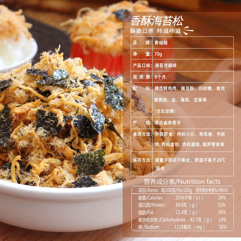 香灿灿 Морские водоросли хрустящая мясная сосна 3а класс суши мясной сосна сосны xiobei выпечка торт 2 кг для хлеба коммерческое использование