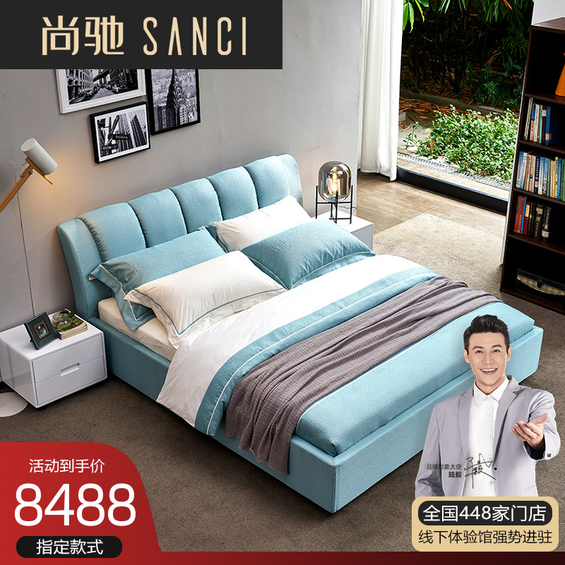 Шанг Чи Скандинавская простая тканевая кровать ветровая сетка красный стиль мягкий пакет Двуспальная кровать 1.8м главная спальня свадебная кровать GB156 ткань мягкая кровать