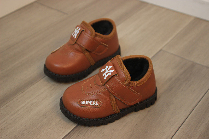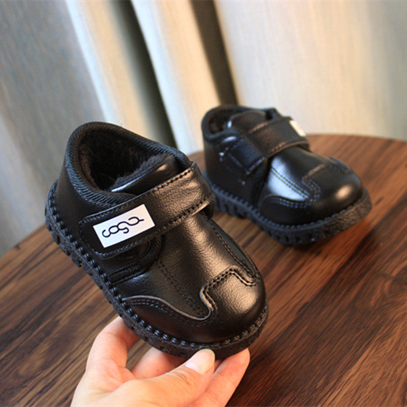 Детские кожаная обувь ботинки с утеплением замшевый зима детские кожаная обувь женский туфли 1-6 лет мягкое дно корейская версия английский стиль на мальчика ботинки с утеплением