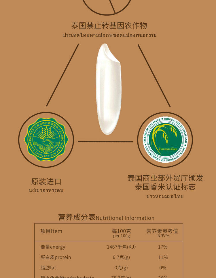 Jia Fujin Pearl Thai Xiangmei Жасмин просо 10 кг Чанцацзян Далем 20 кит.фунт Тайский рис в оригинальной упаковке импорт