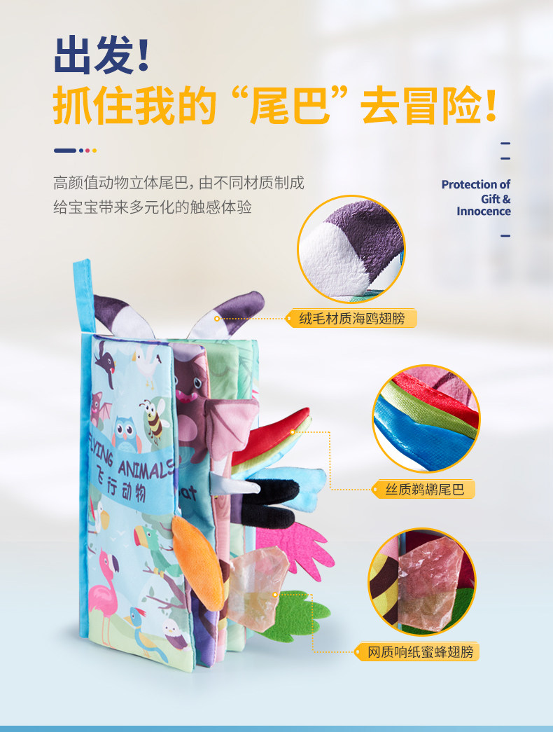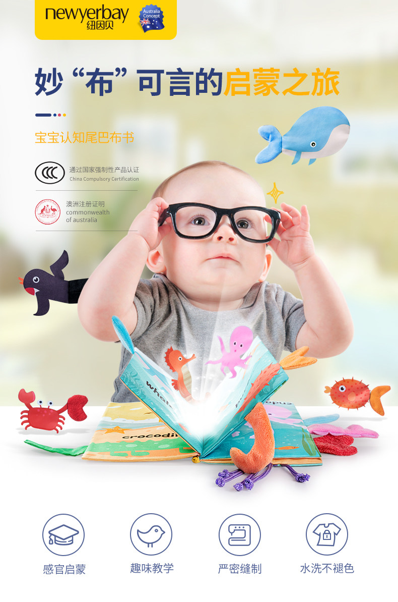 Ньюбай на младенца Забронировать раннее образование стерео хвост Слеза книги может укусить 6 месяцев детские Игрушки головоломки 0-1 лет