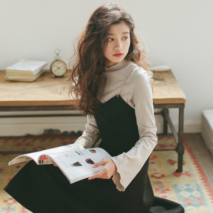Осенние женщины, одетые на улицу в ношении длинный рукав Футболка трикотажный Школа рубашки фэн Чуциу верх Женское ощущение ощущения дизайна основание рукава