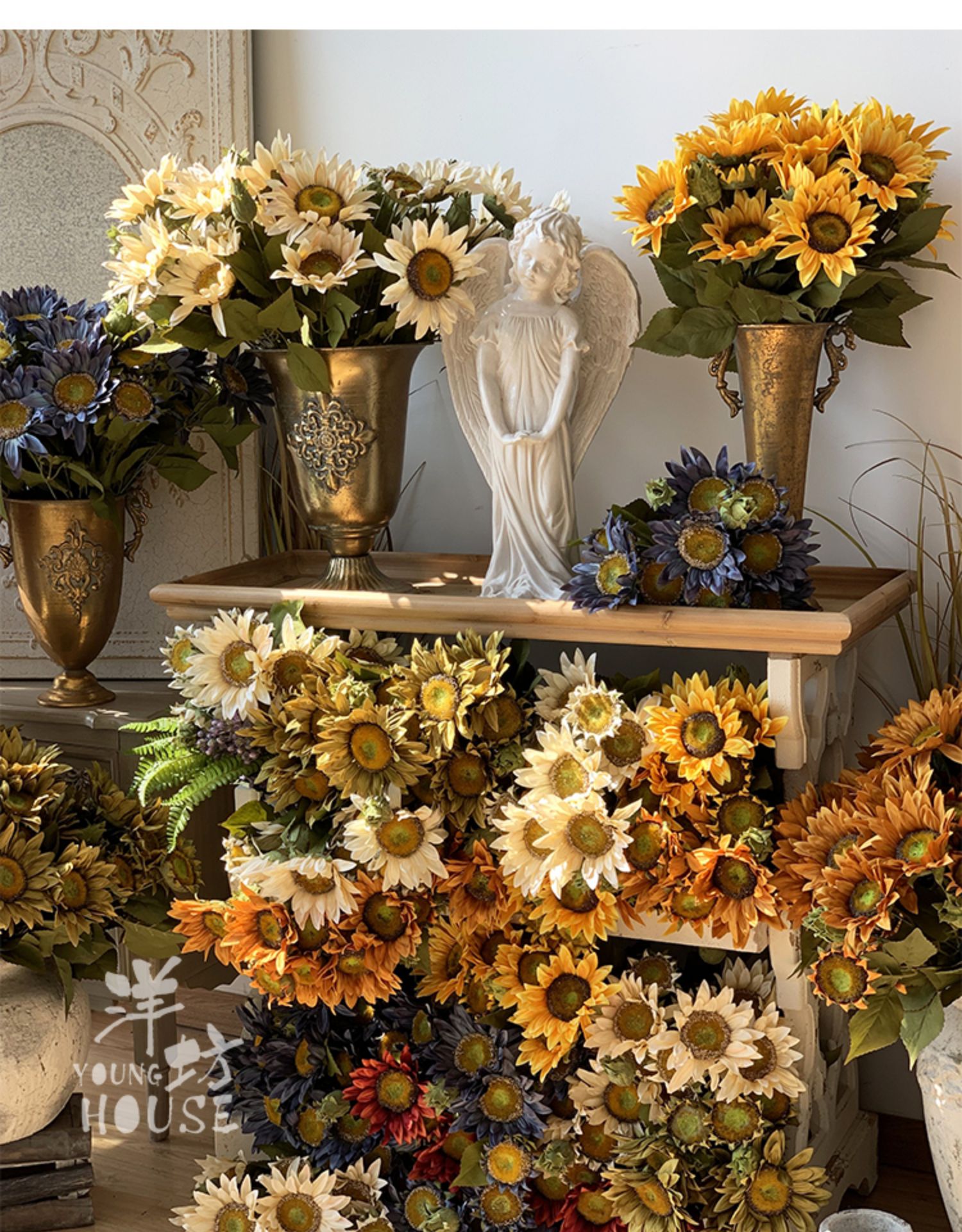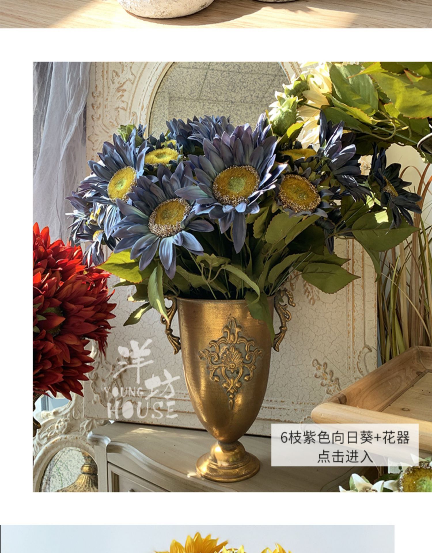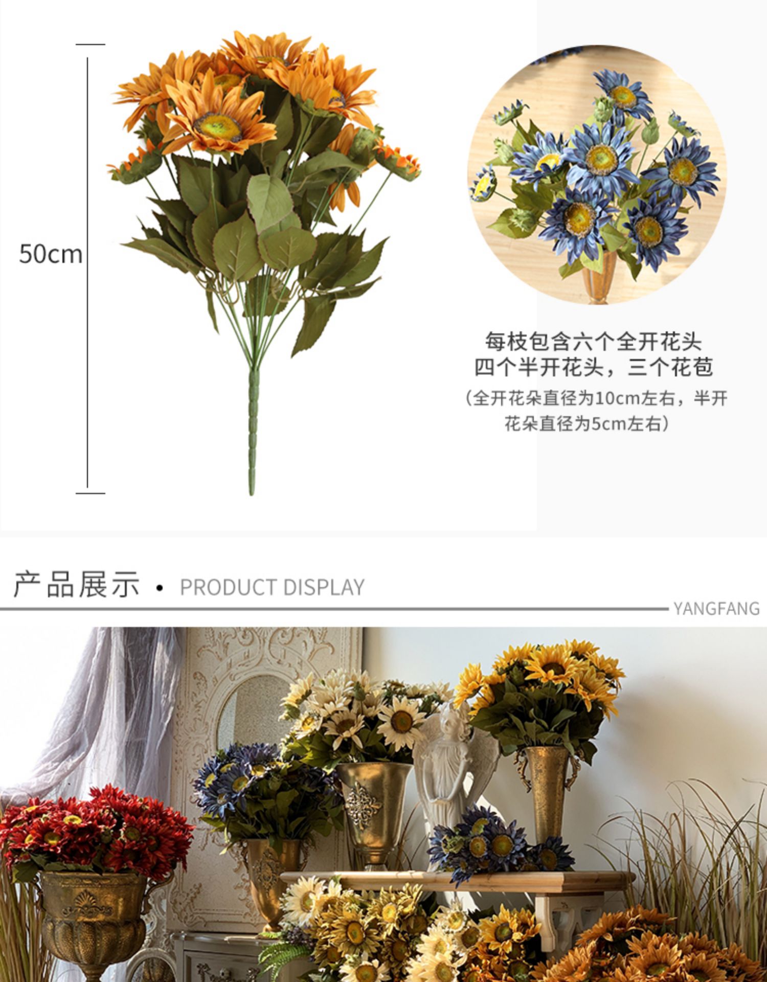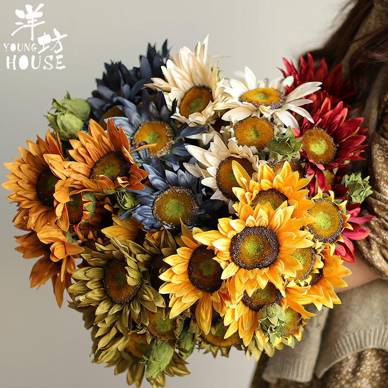 Океанская масляная живопись подсолнечника копия Реальный цветок 13 поддельных цветов солнца букет сухого цветка гостиная орнаменты 布家居