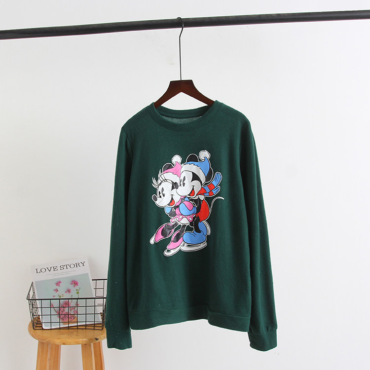 Для импорта демисезонный время года корейская версия Мультфильм круглый воротник замшевый толстовка для отдыха Возрастное снижение, свободные, тонкие и милые верх Одежда для отдыха