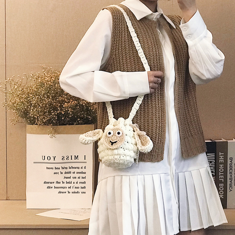 Маленькая овца ручная работа вязанные пакет пакет поделки материал пакет полностью Набор самоделок трикотажный крюк стрелка шерстяная пряжа Женщина-посланник пакет
