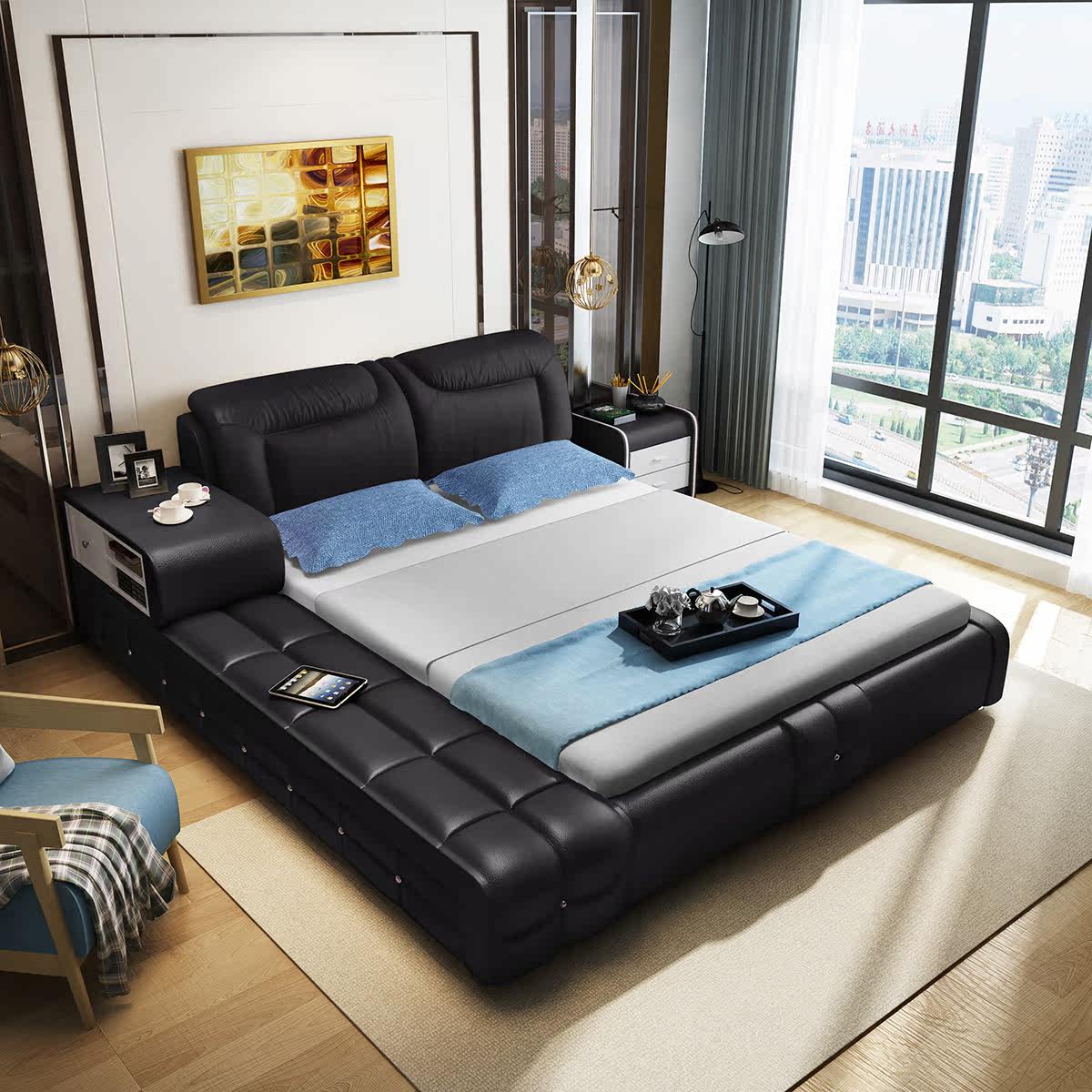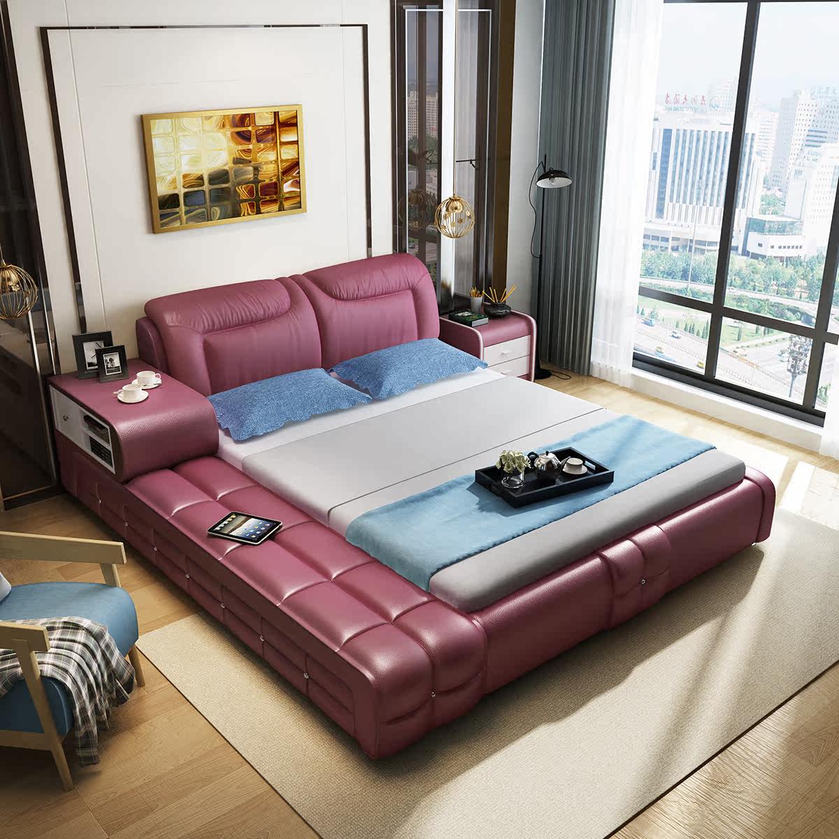 Настоящее время поколение Простая 1,8 м кровать из массива дерева двуспальная кровать для хранения татами спальня из натуральной кожи кровать
