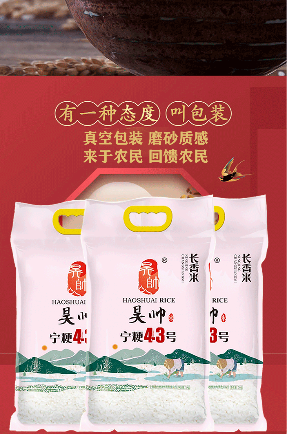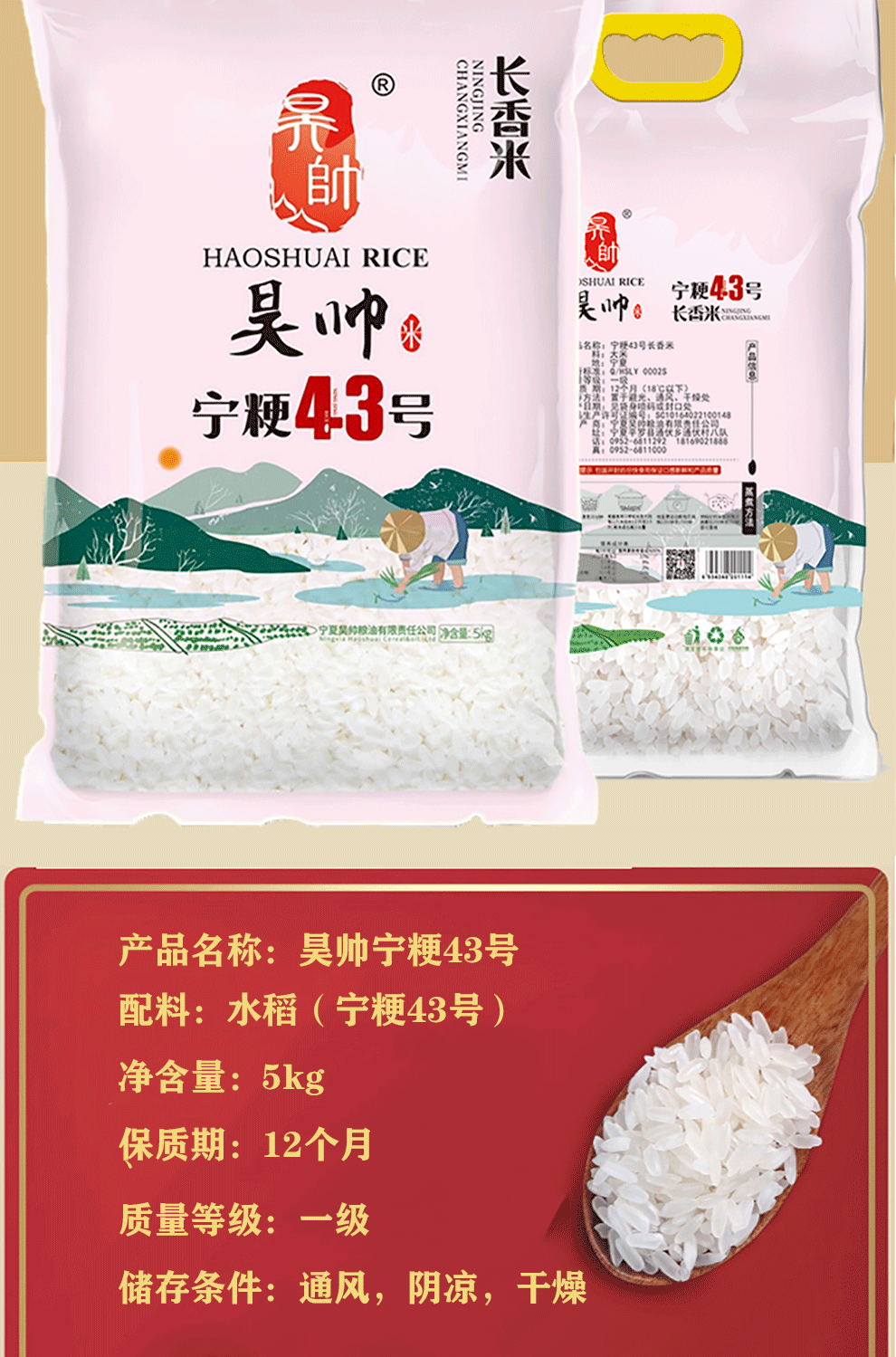 Хао Шуай Нинсия Ниндзин № 43 5 кг, ароматный рис удлиненный рис удлиненный рисовый зерно новый Рис длинный зерна 10 кит.фунт