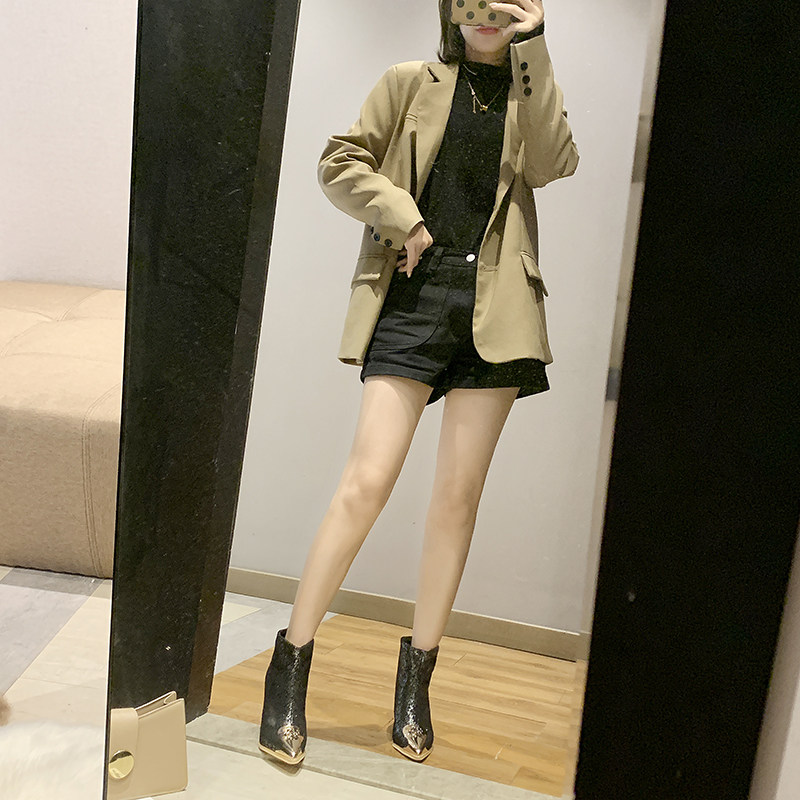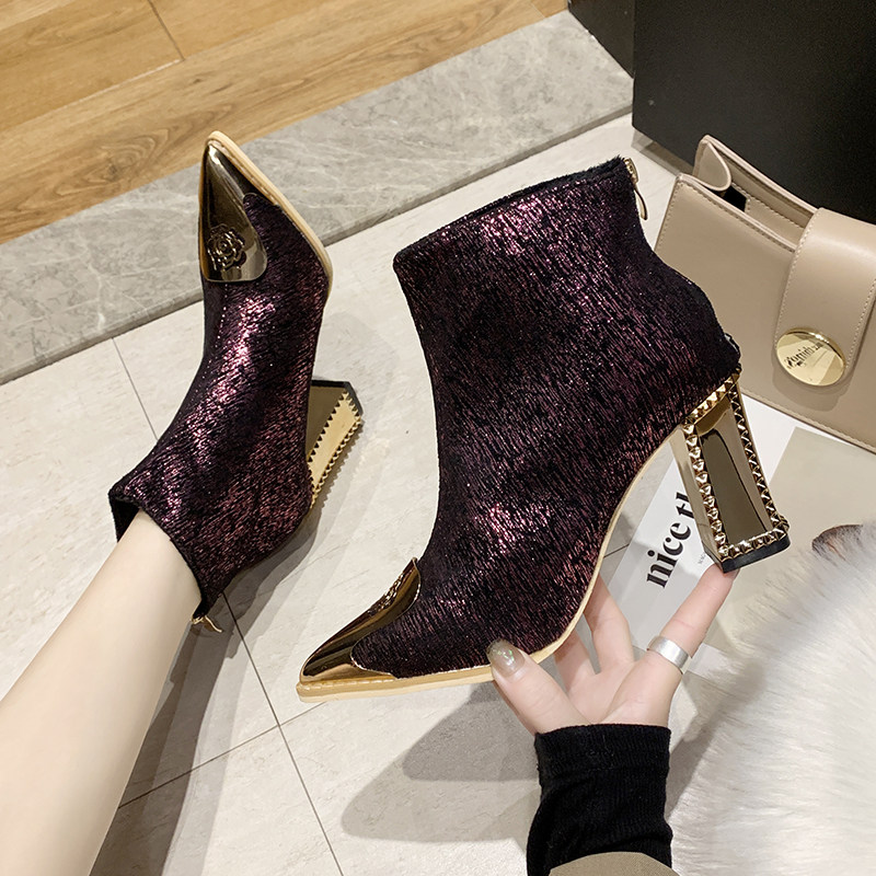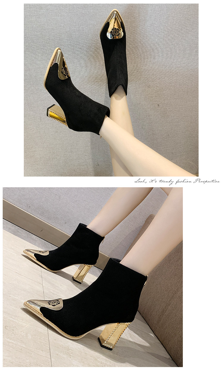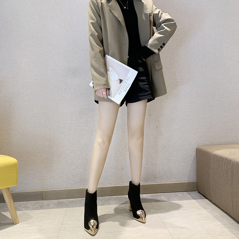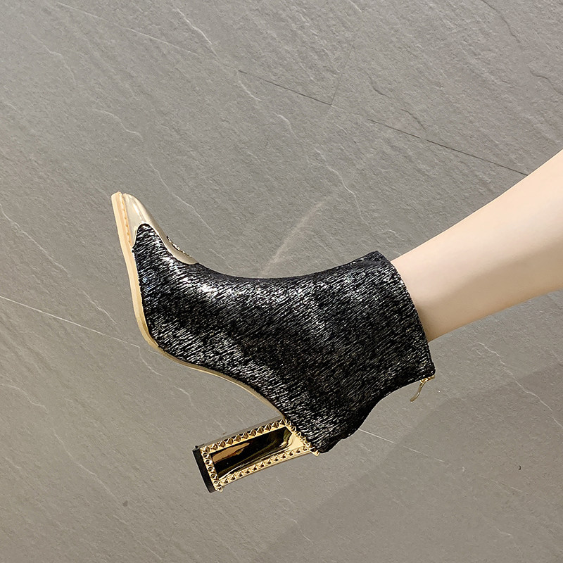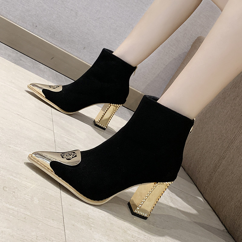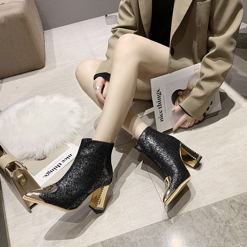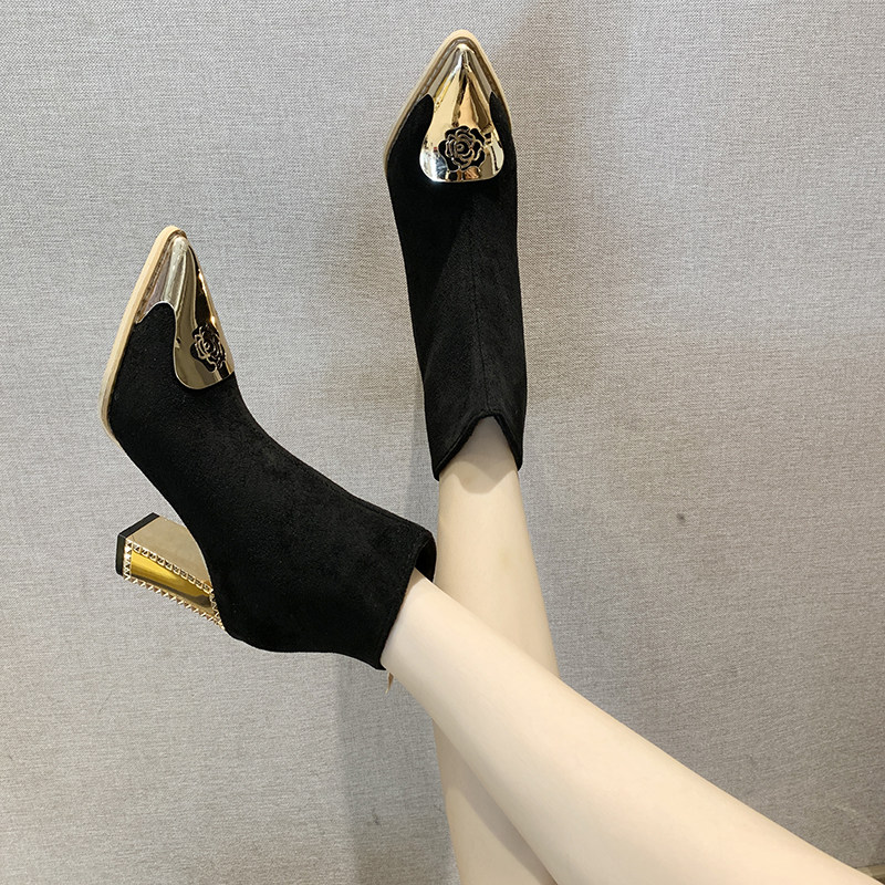 Ботинки женский с острым носом на высоком каблуке Обувь 2020. осень-зима новая коллекция Сексуальные голые ботинки широкий каблук черный Пустыня берцы прилив