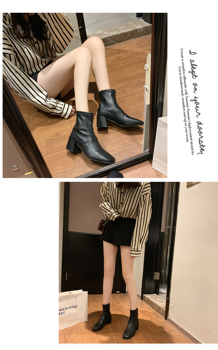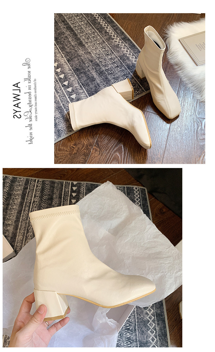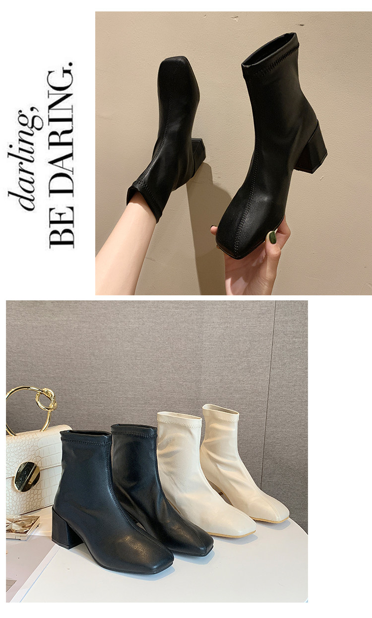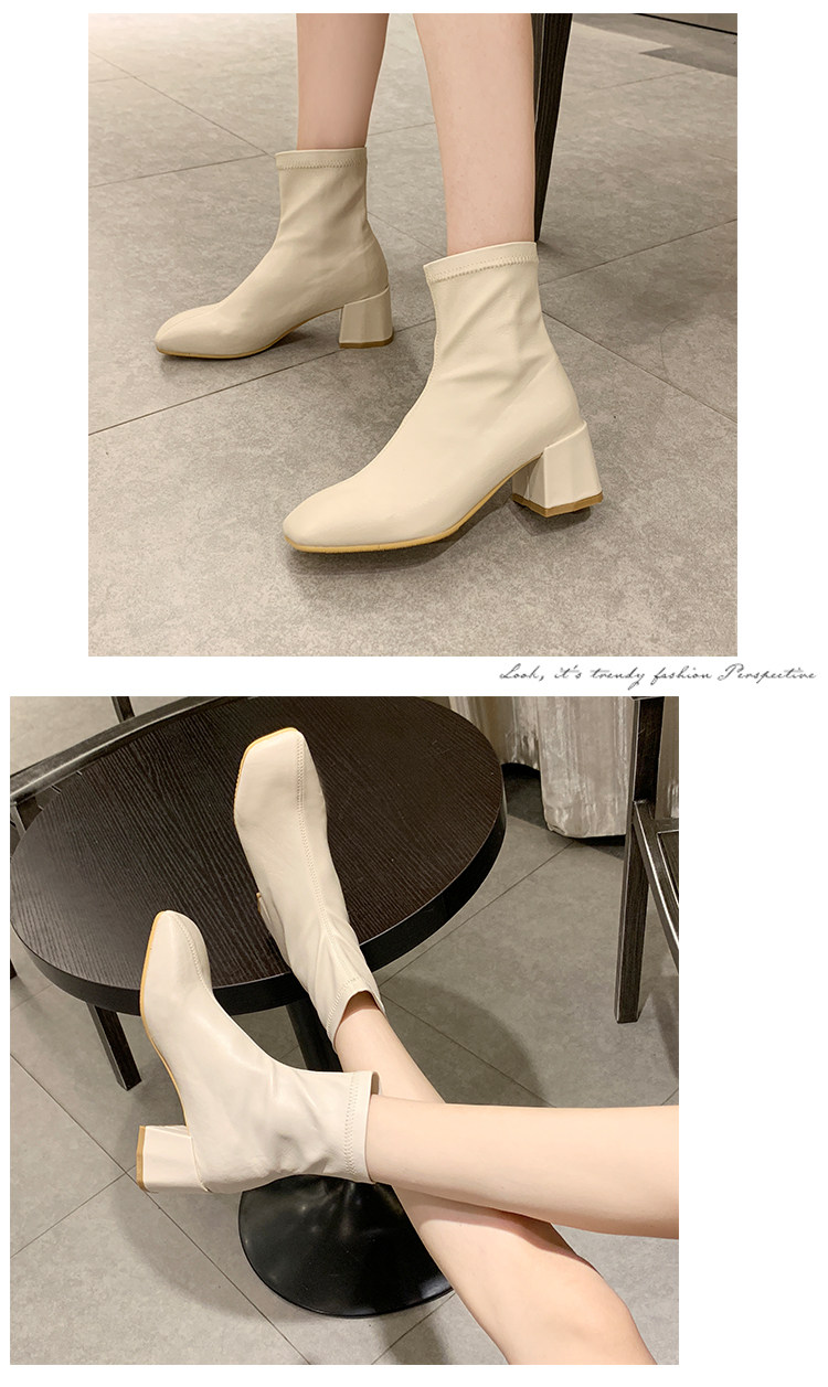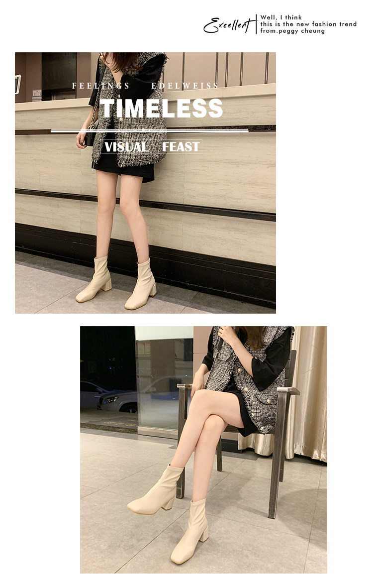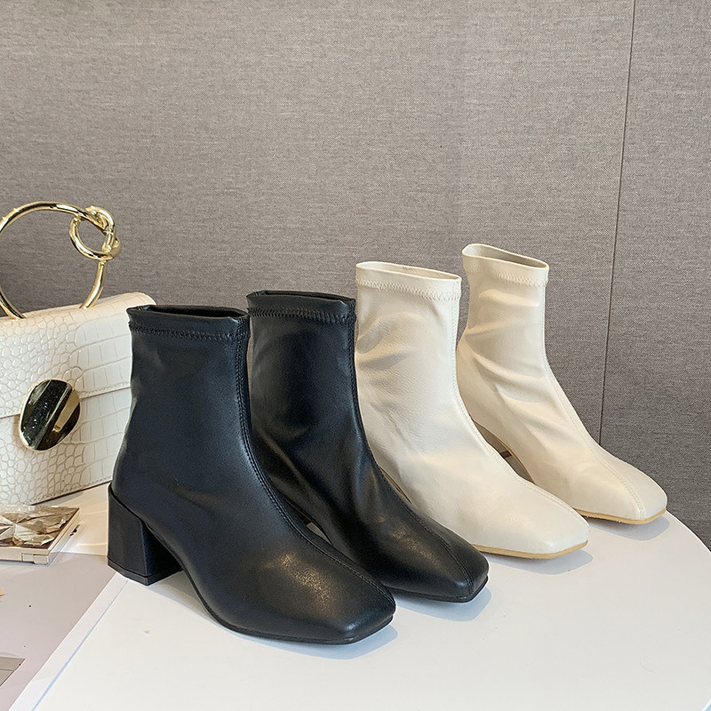 Метр белый берцы Женский винтаж 2019 осень-зима сезон новая коллекция Матч эластичные Сапоги скинни широкий каблук ботинки сын