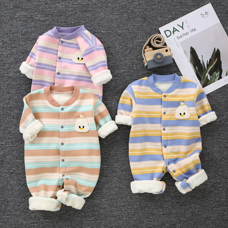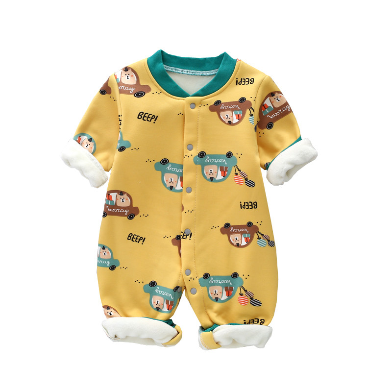 На младенца удерживающий тепло Покрытый замшевый утепленный мужские и женские детские длинный рукав 衣 服. новый беременность на младенца одежда осень-зима