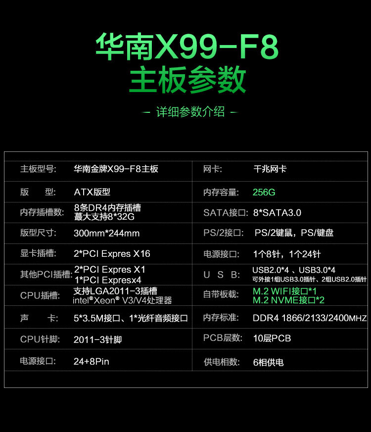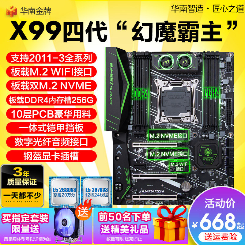 HUANANZHI / Южный Китай Золотой X99-F8 / T8 / 8M панель C кожзаменитель комплект Игра Настольный компьютер 2696V3