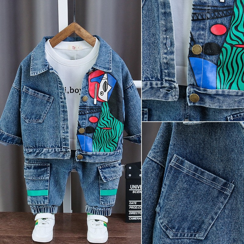 Детские комплект на мальчика Осенний малыш чистый хлопок джинсовый куртка Красивый мужской ребенок демисезонный время года 3 накладки 1-3-5 лет 2