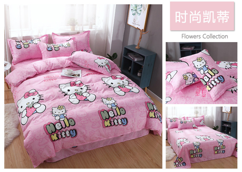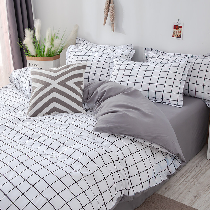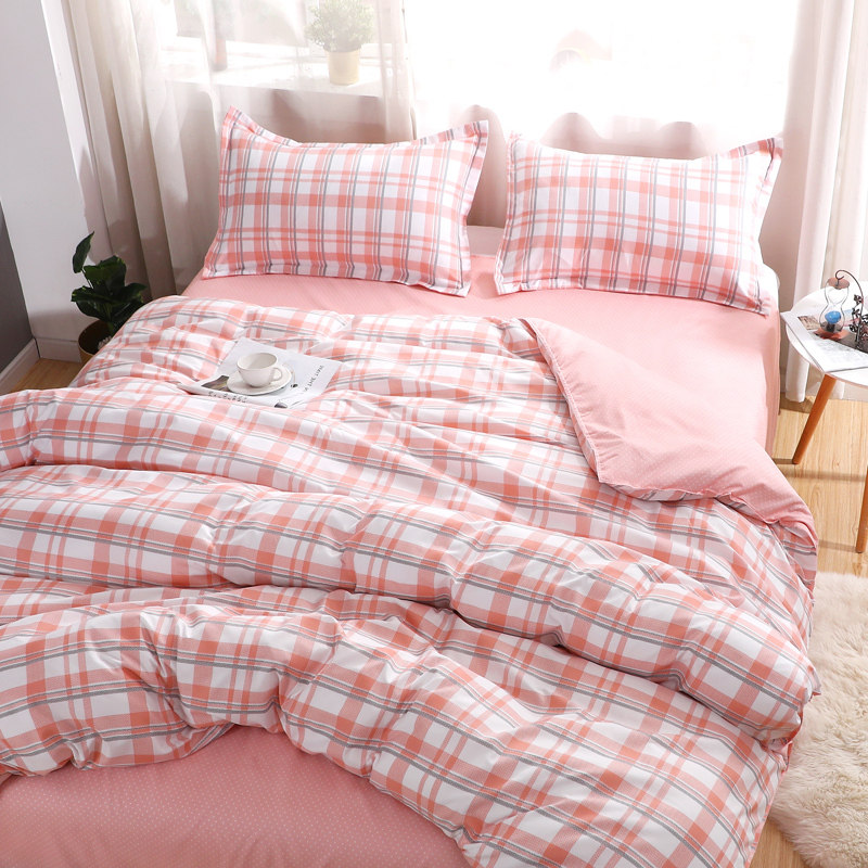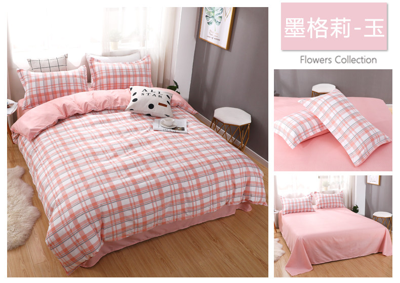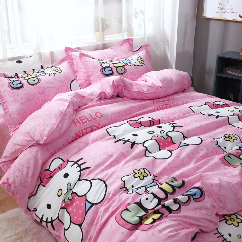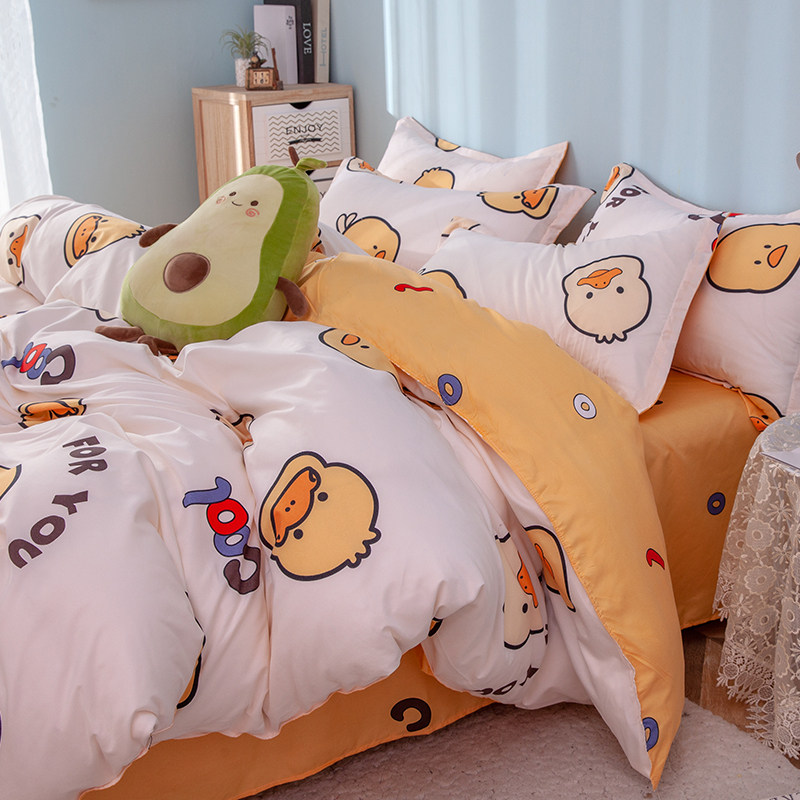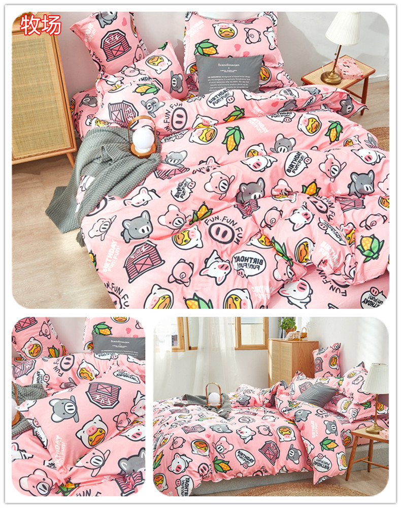 Сеть красный стиль 4 предмета Общежитие кровать верх Запасы один Люди студент кровать один пододеяльник 3 накладки Простая мультяшная мытье хлопок