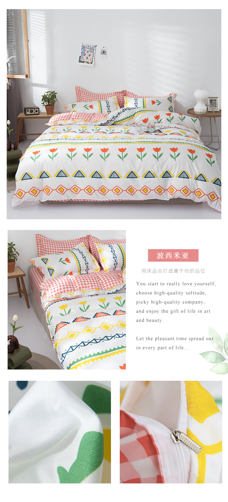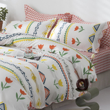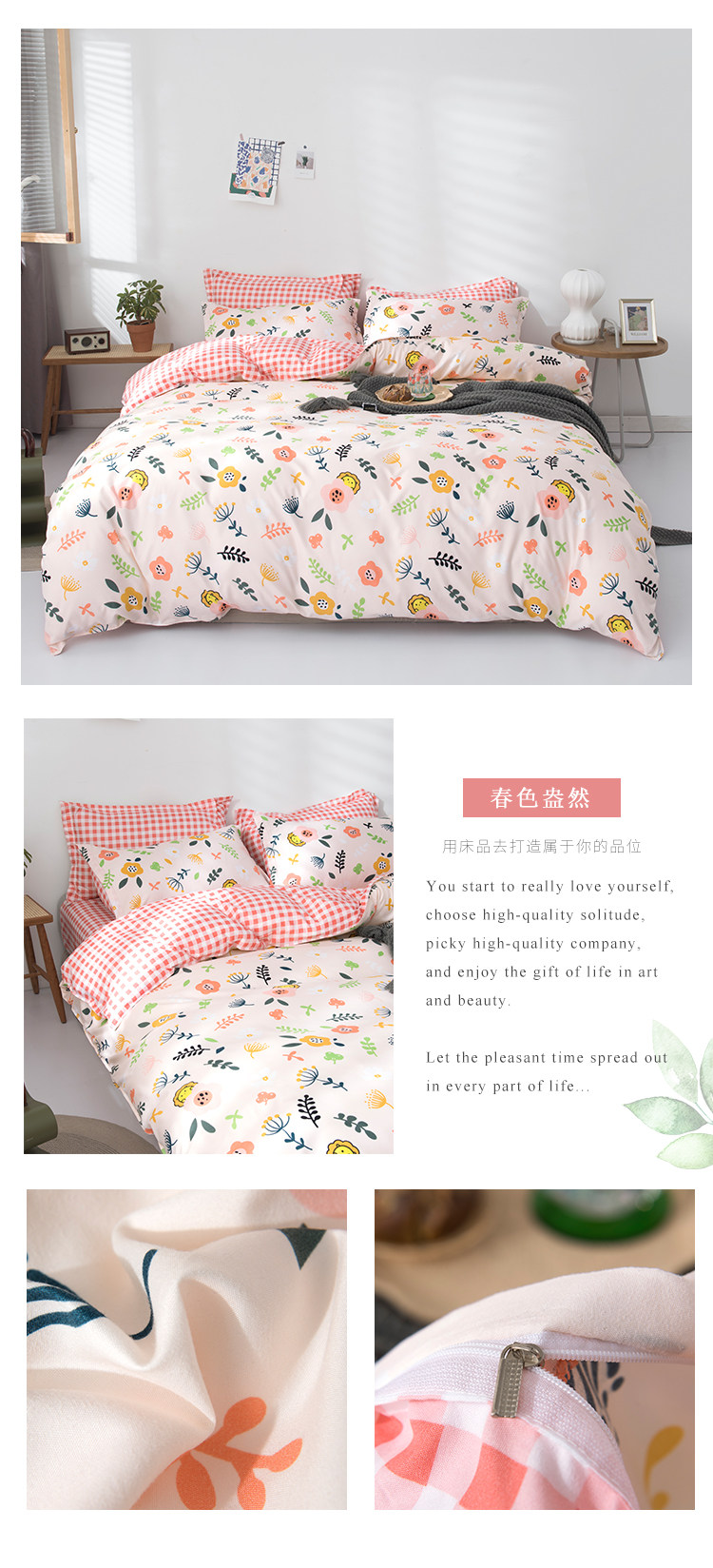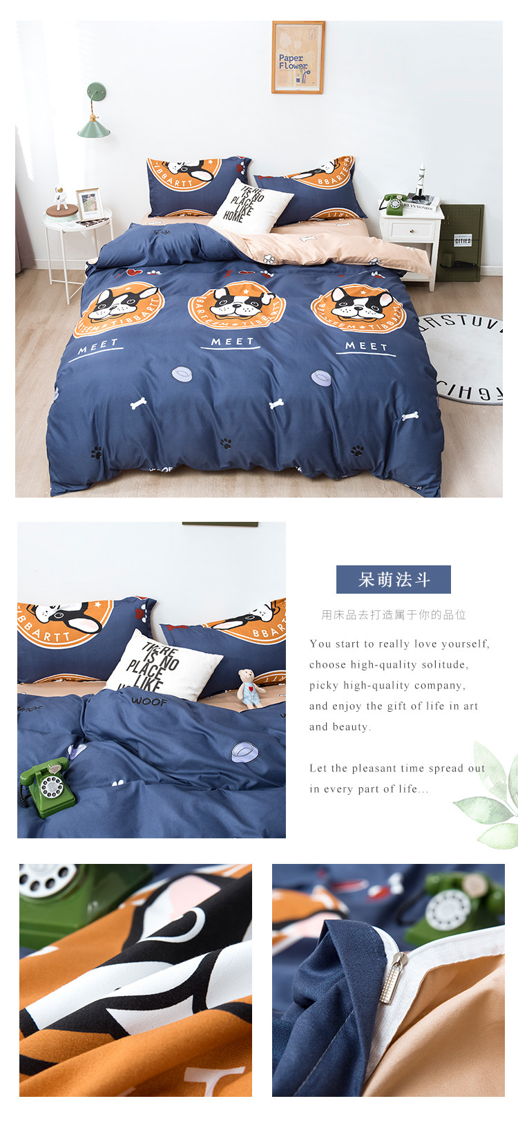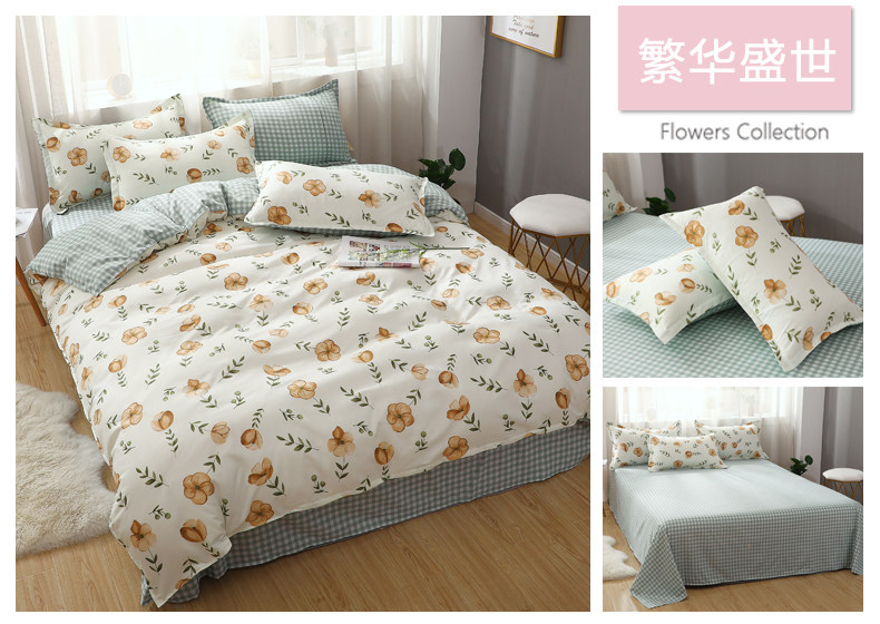 Сеть красный стиль 4 предмета Общежитие кровать верх Запасы один Люди студент кровать один пододеяльник 3 накладки Простая мультяшная мытье хлопок