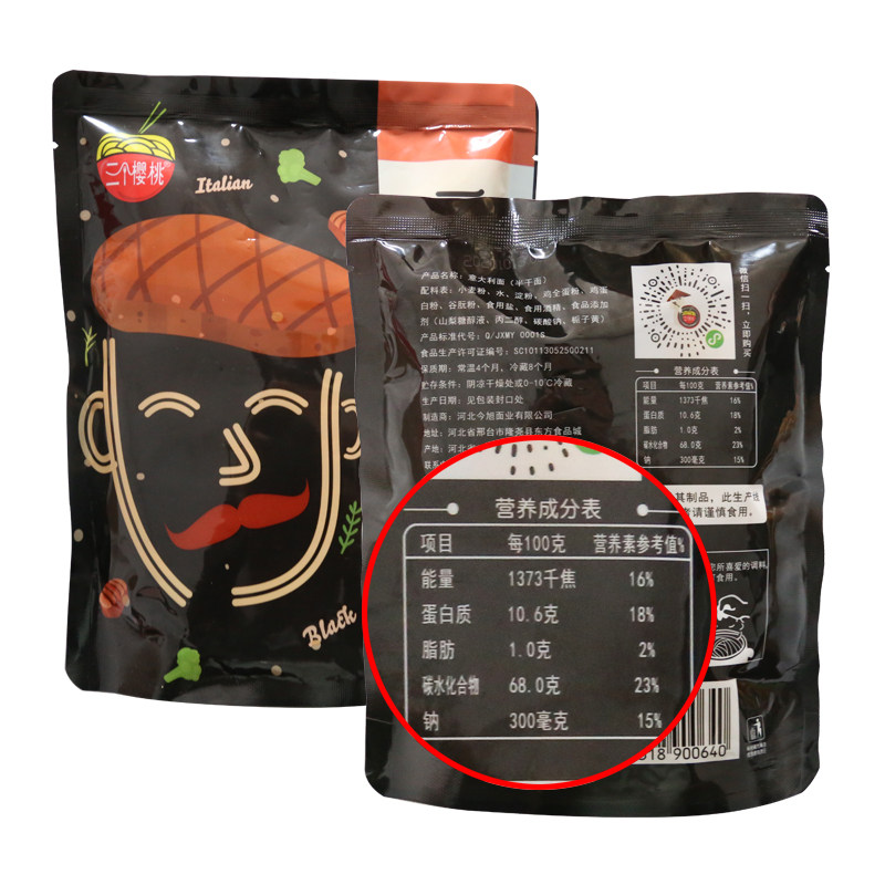 Три вишневые макаронные изделия с низким содержанием жирной продукты питания не импортированные макароны полностью Пшеница свежая лапша полосатый