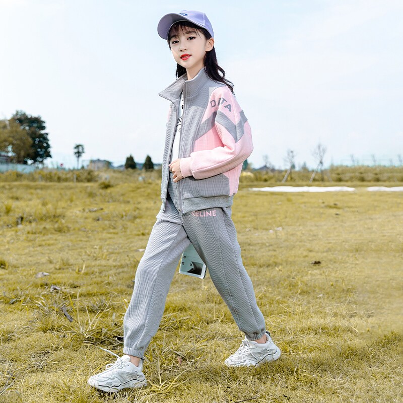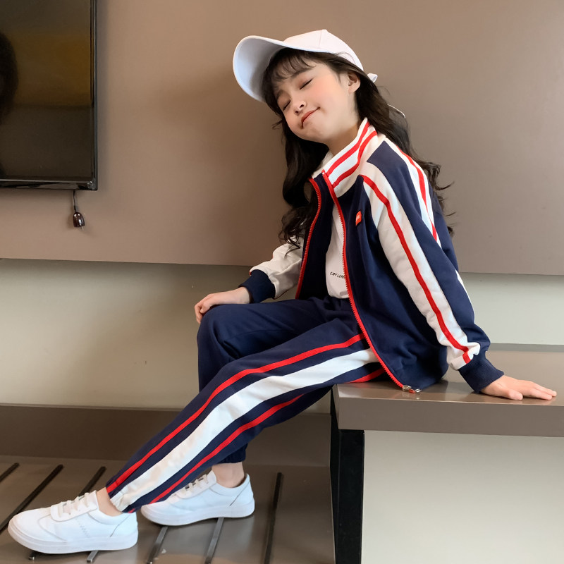 На девочку сеть красный Спортивная одежда комплект Весна 2022. новая коллекция Ребенок детские Океаническая хипстерская девушка демисезонный два наборы