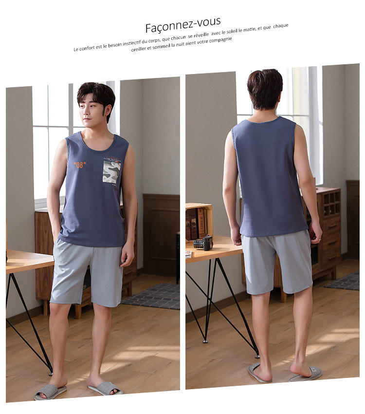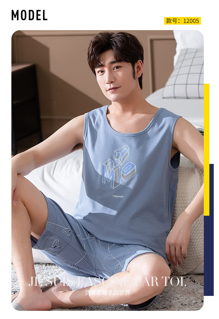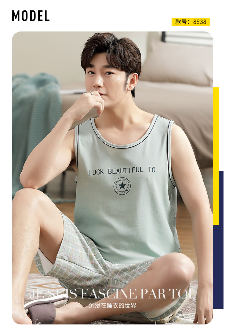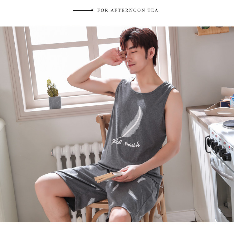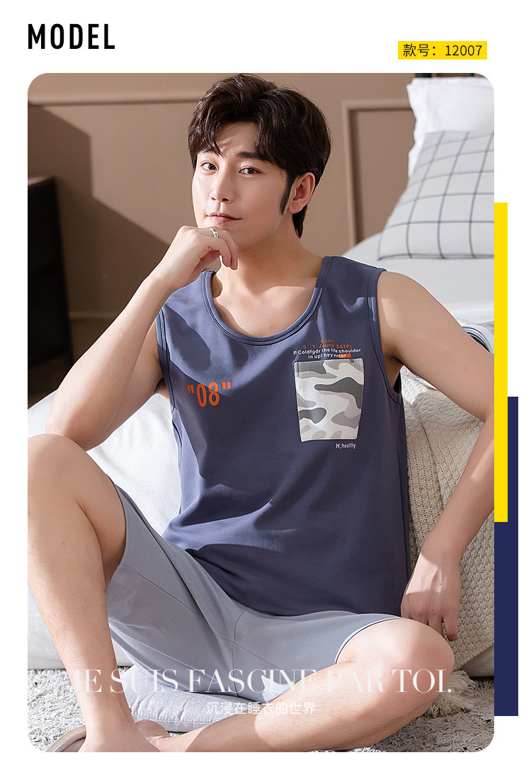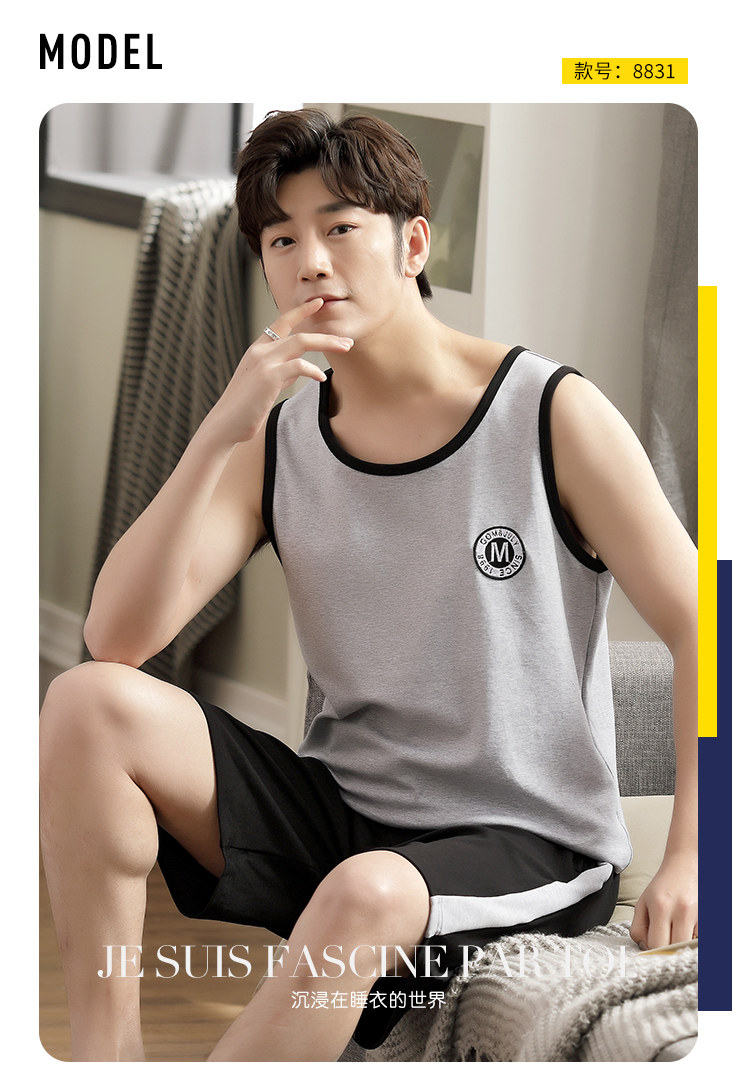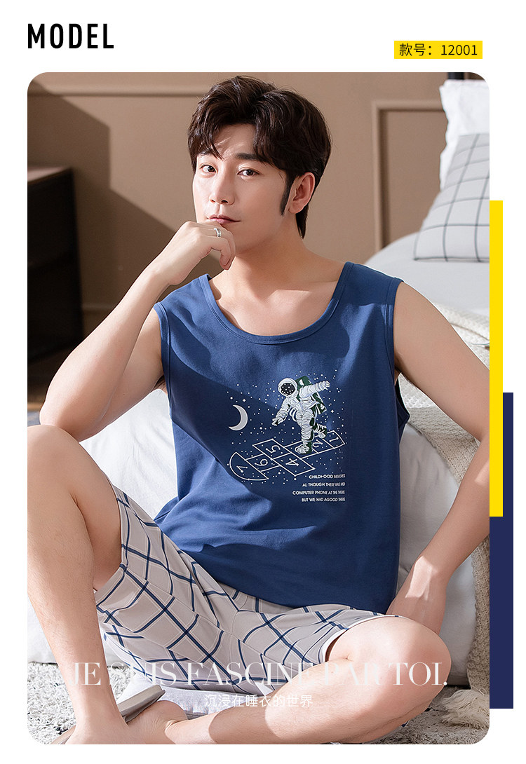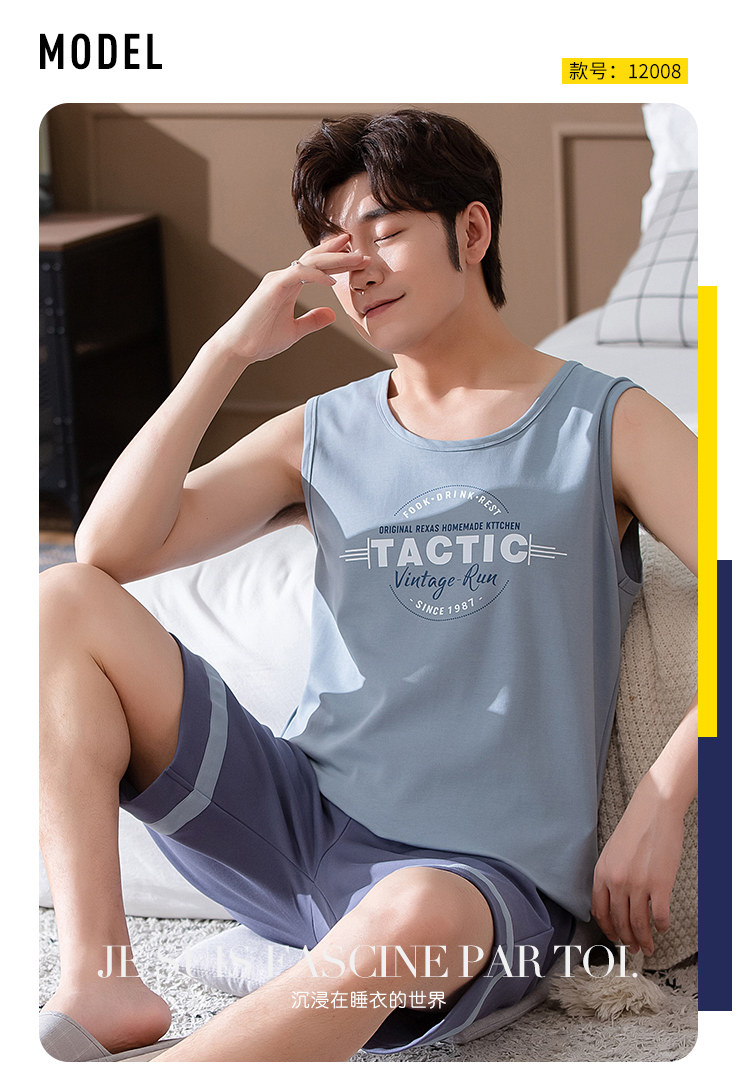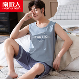 Антарктика мужской без Спящая пижама лета чистый хлопок Тонкий стиль Свободный большой размер Жилет шорты мужской Домашняя служба комплект