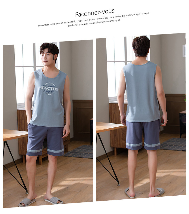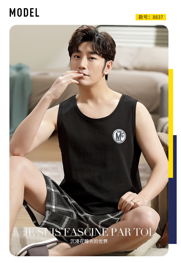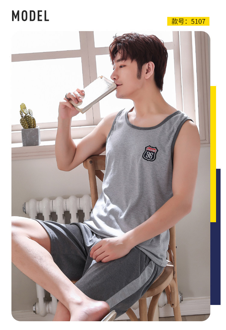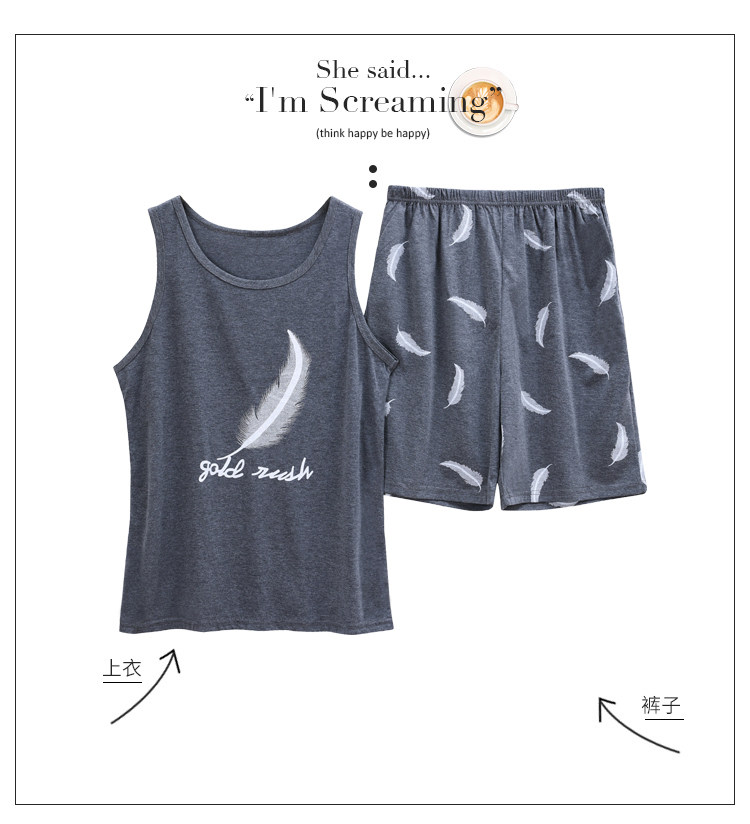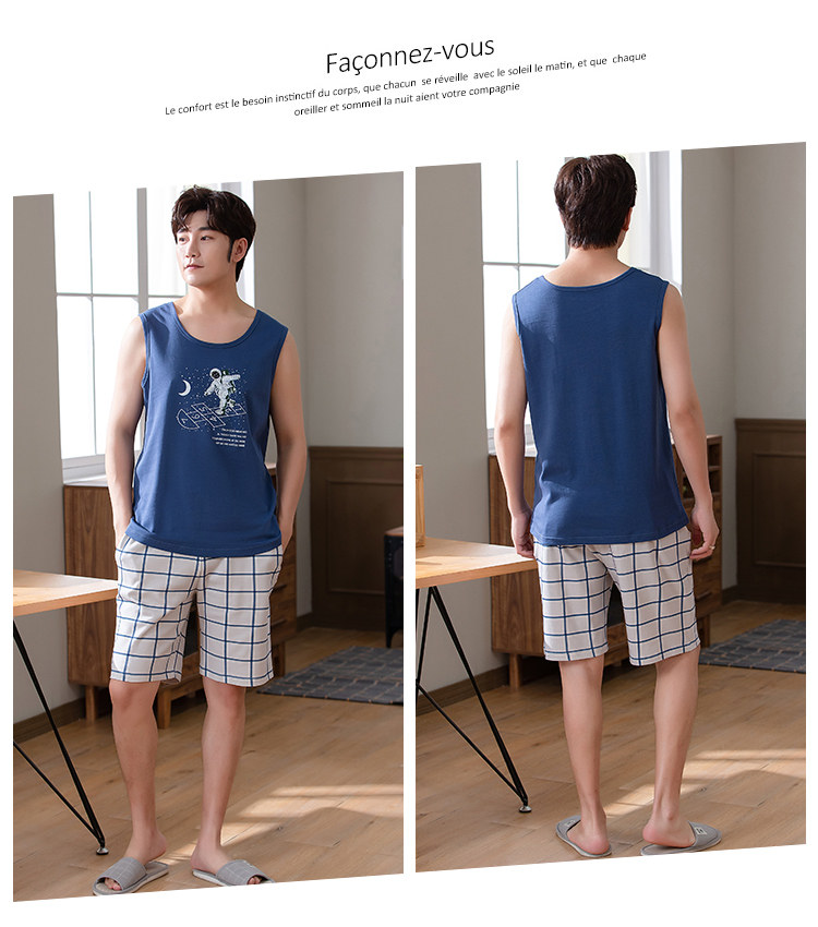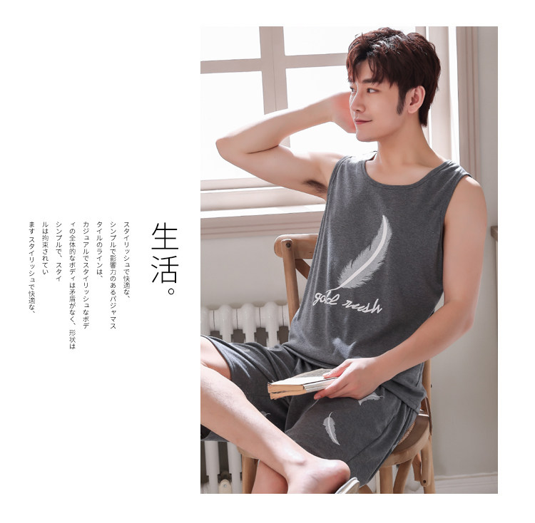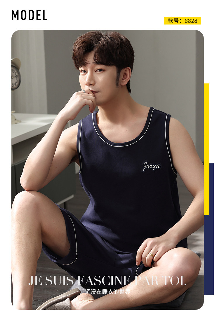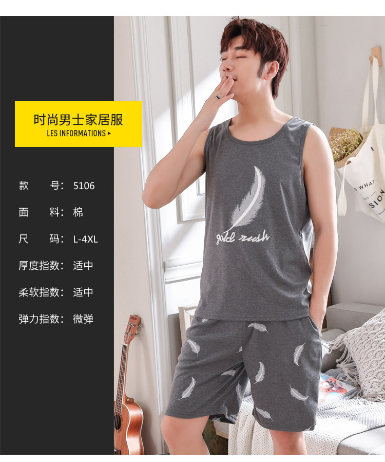 Антарктика мужской без Спящая пижама лета чистый хлопок Тонкий стиль Свободный большой размер Жилет шорты мужской Домашняя служба комплект