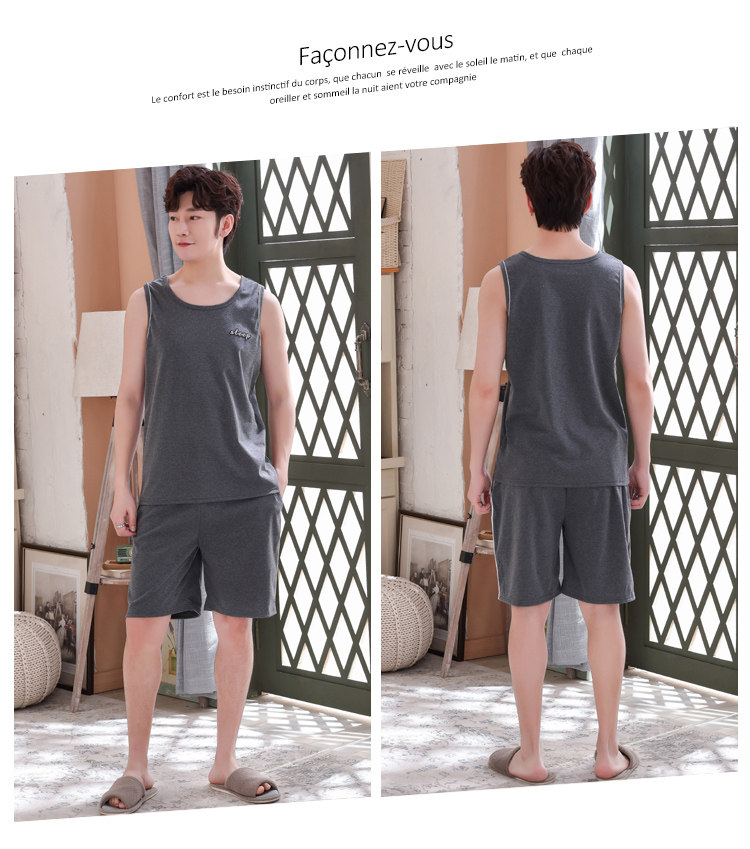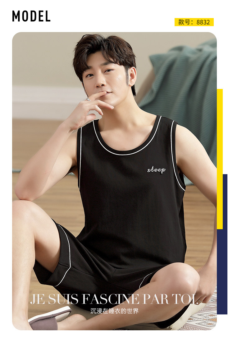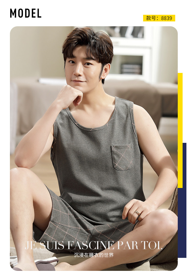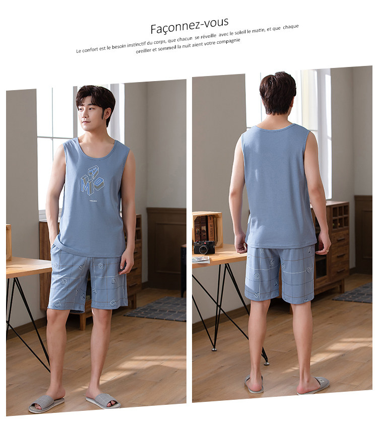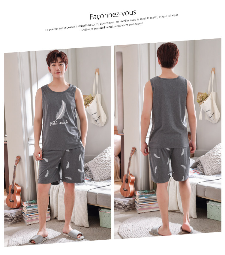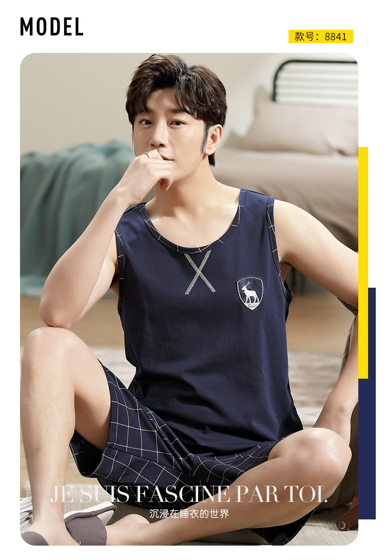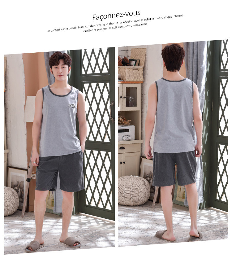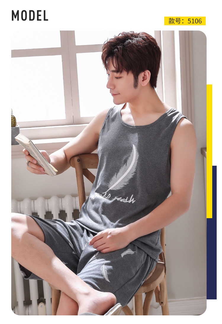 Антарктика мужской без Спящая пижама лета чистый хлопок Тонкий стиль Свободный большой размер Жилет шорты мужской Домашняя служба комплект