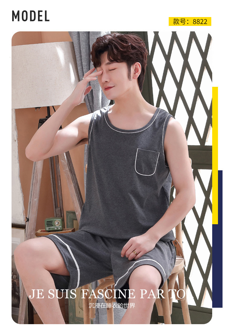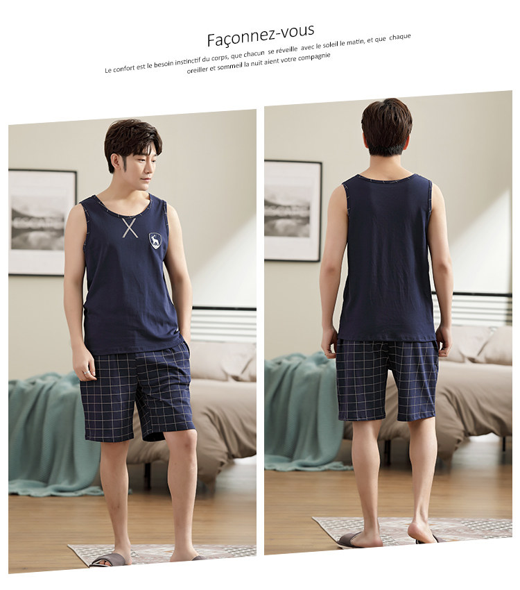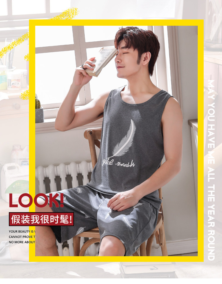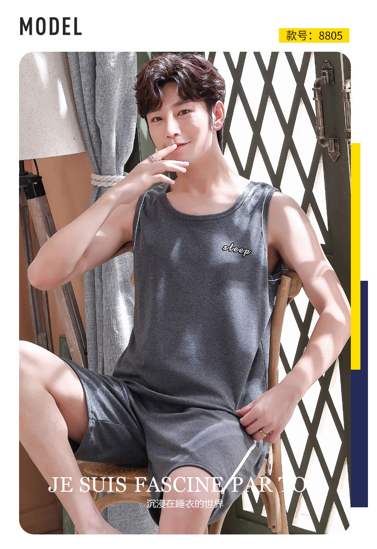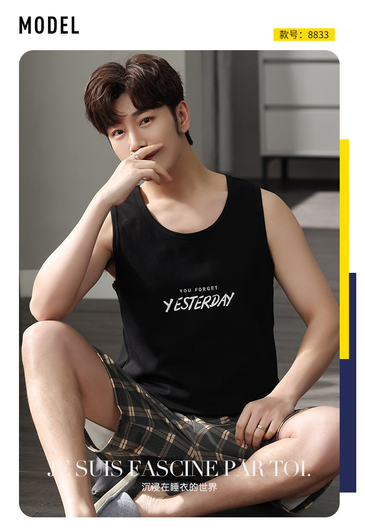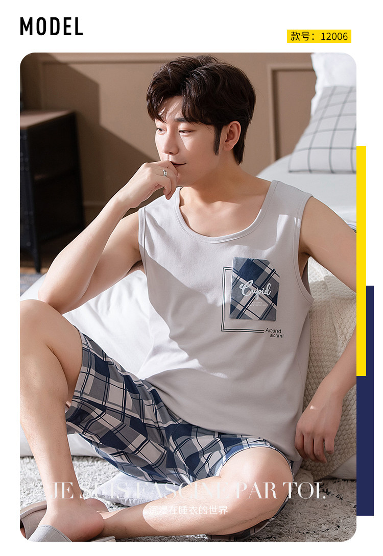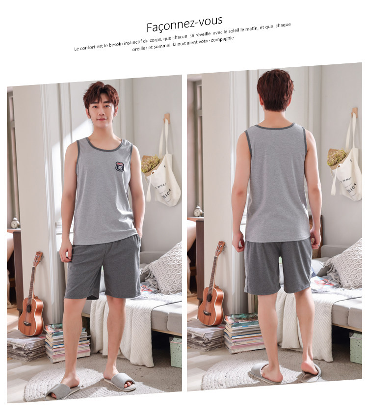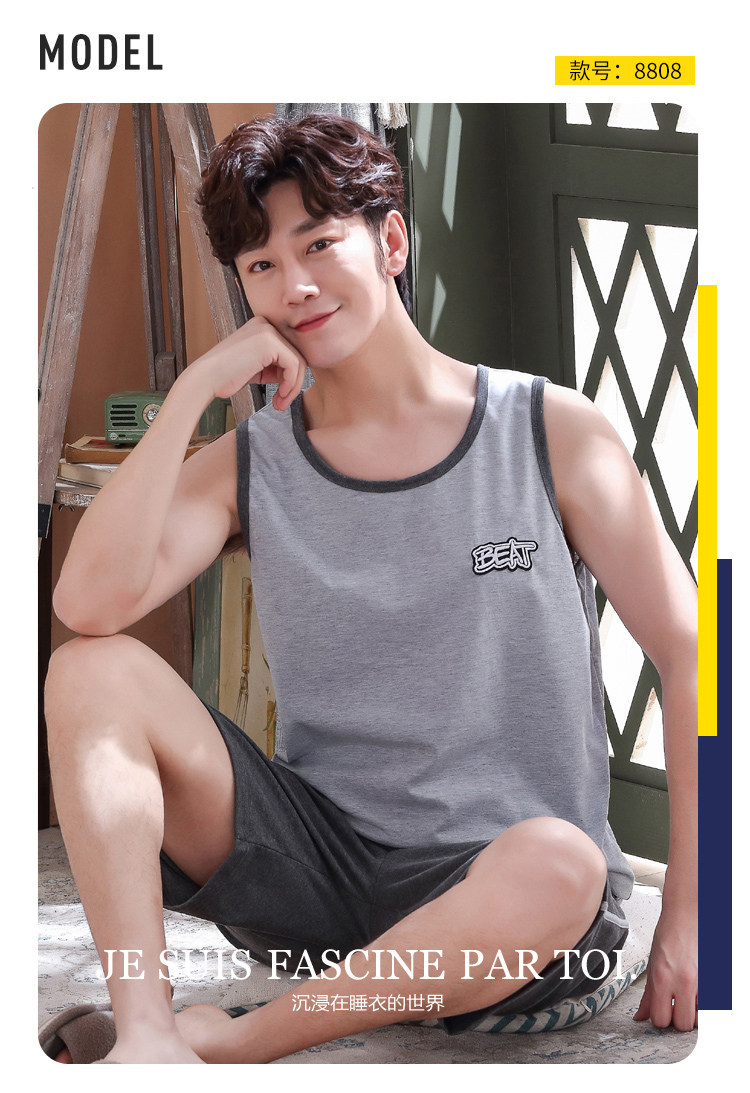 Антарктика мужской без Спящая пижама лета чистый хлопок Тонкий стиль Свободный большой размер Жилет шорты мужской Домашняя служба комплект