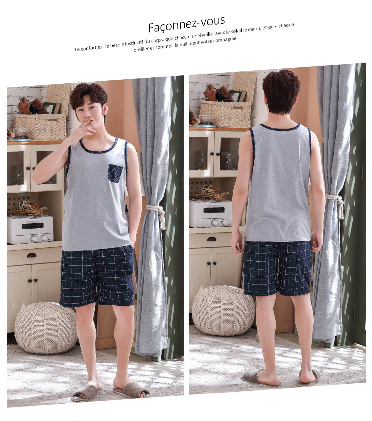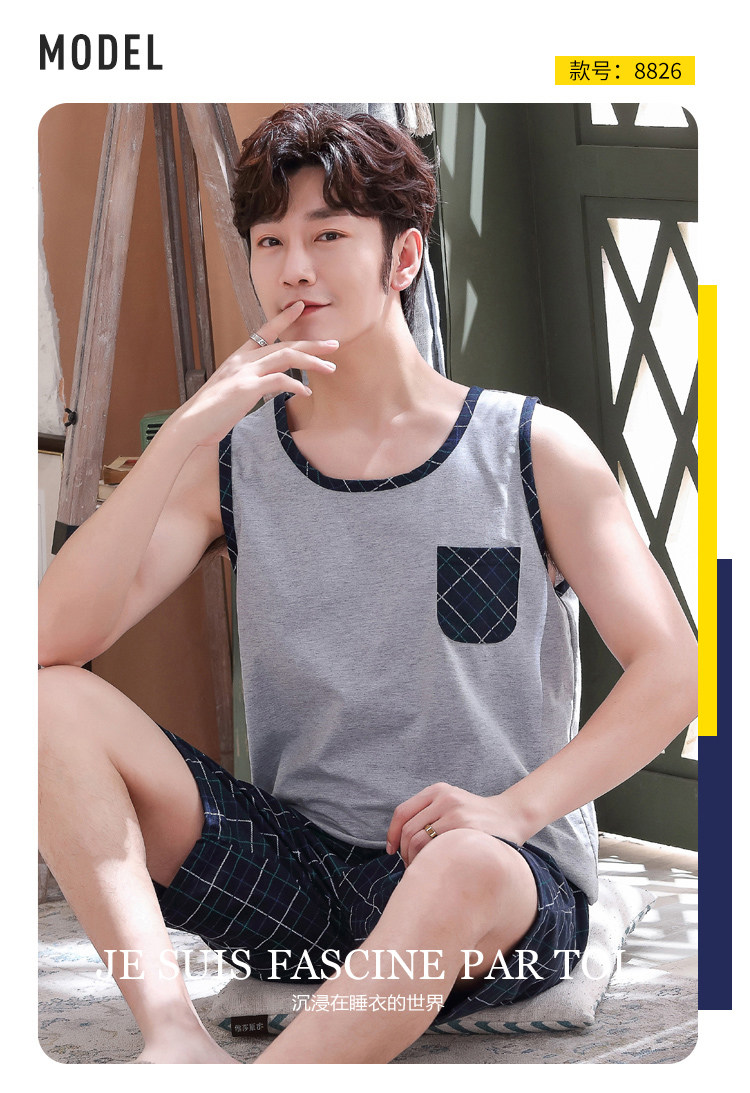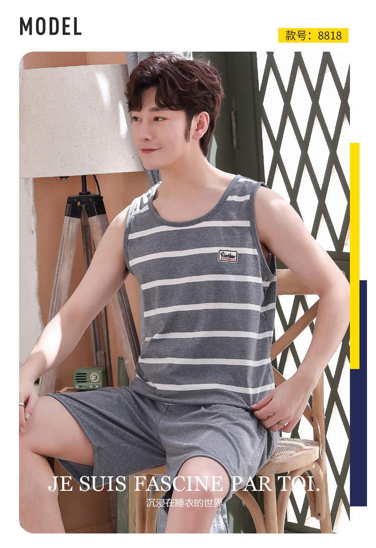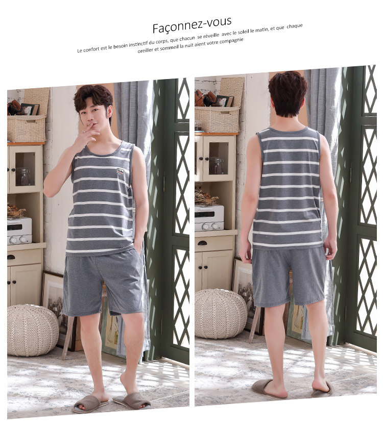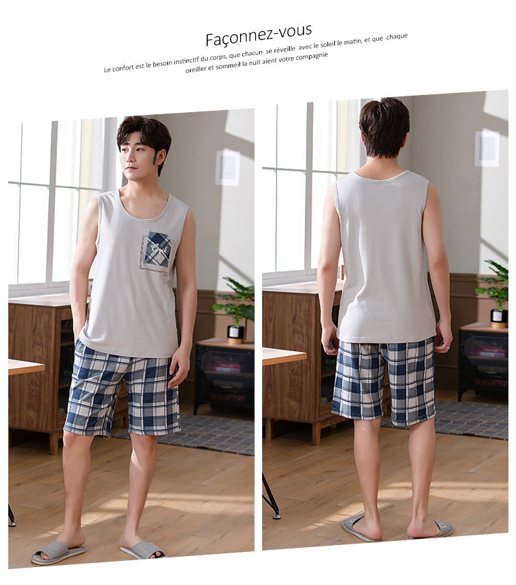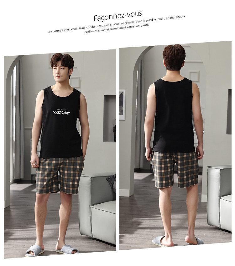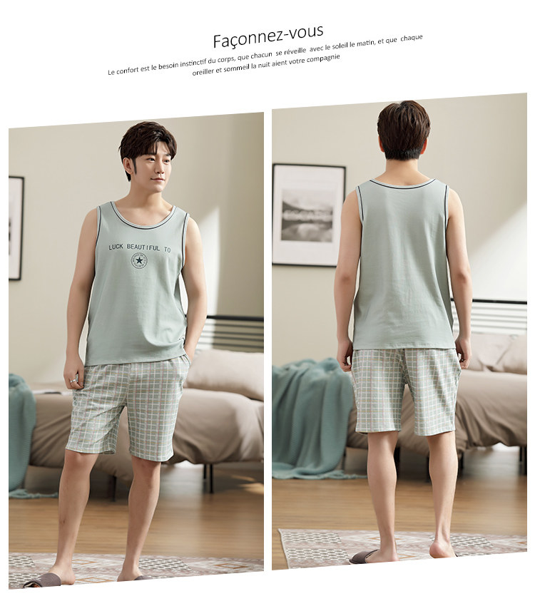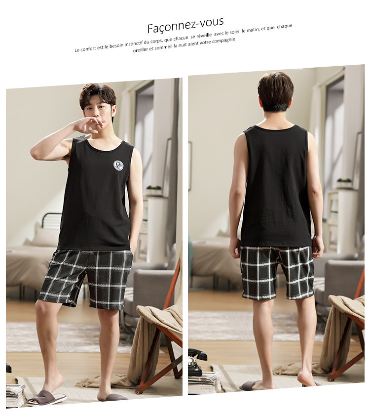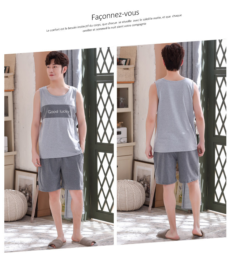 Антарктика мужской без Спящая пижама лета чистый хлопок Тонкий стиль Свободный большой размер Жилет шорты мужской Домашняя служба комплект