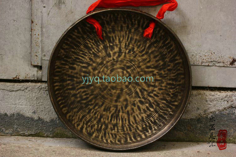 Ручная работа Изысканный бронзовый гонг 30 см и 30 см высокая Завивка кромочного гонга на плоской подошве Гонг Даосское Додзё Бронзовая Дхарма