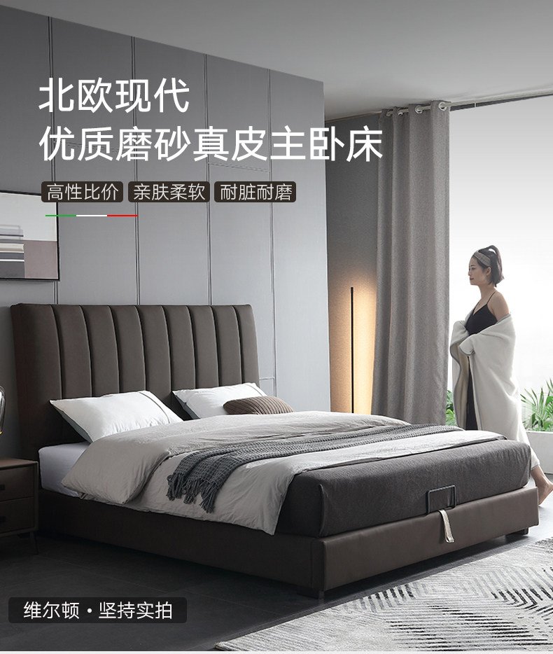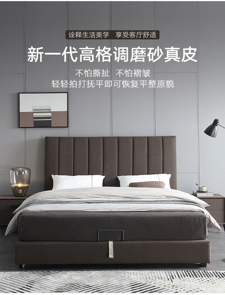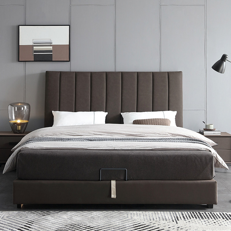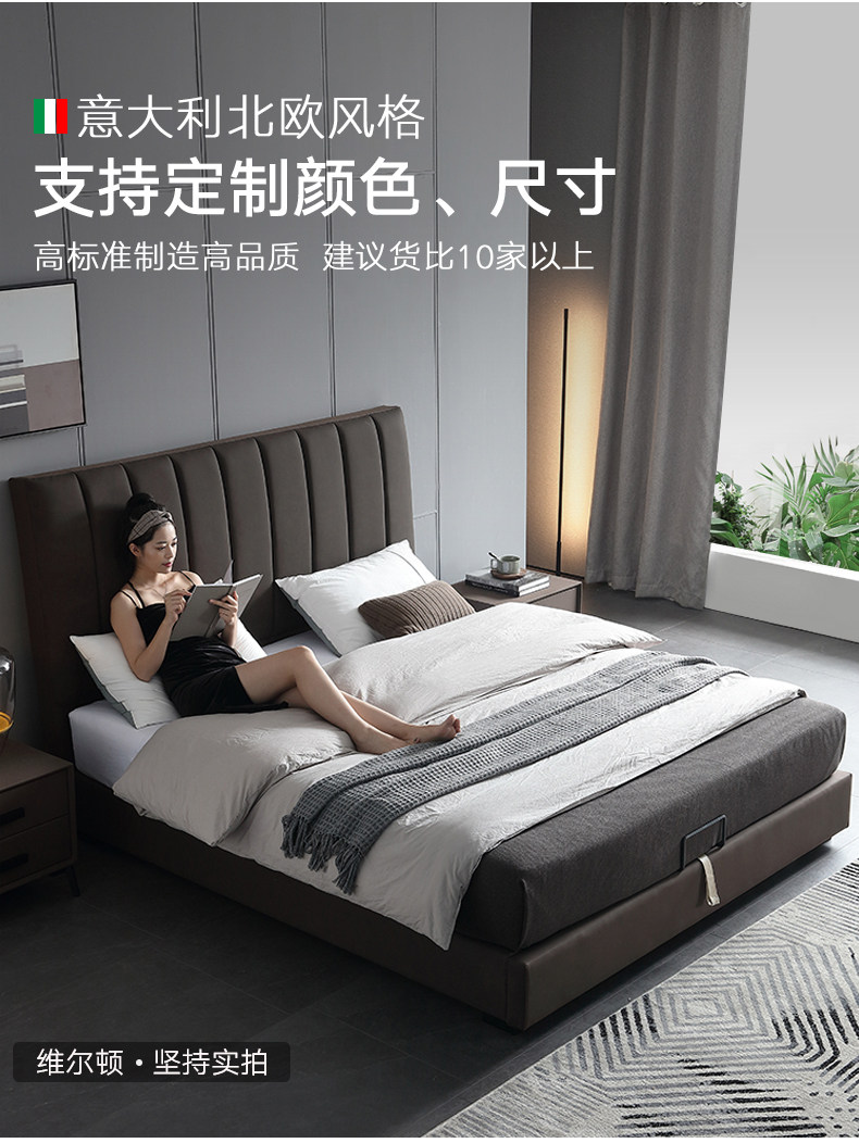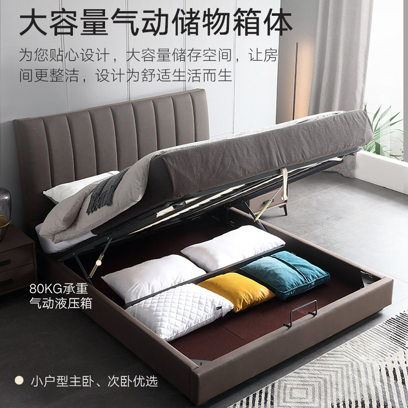 Северная легкая роскошная кожаная кровать простая презентация поколение Небольшая квартира ноутбук из натуральной кожи Кровать 1,8 метра два человека Qiqian высокая Кровать для хранения коробки