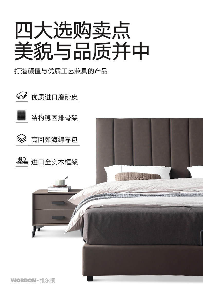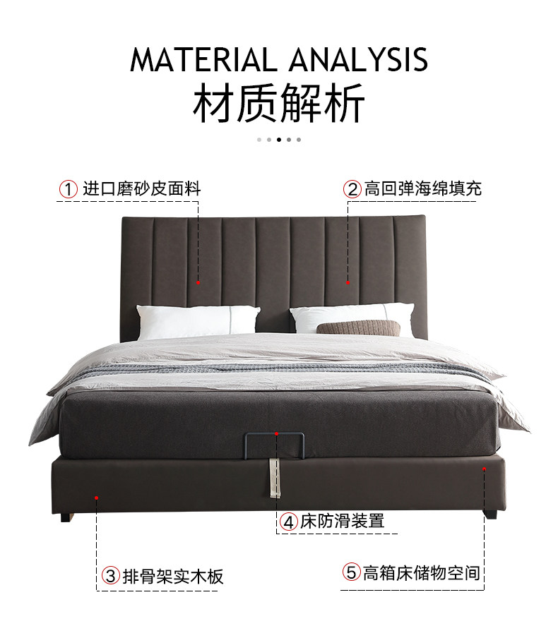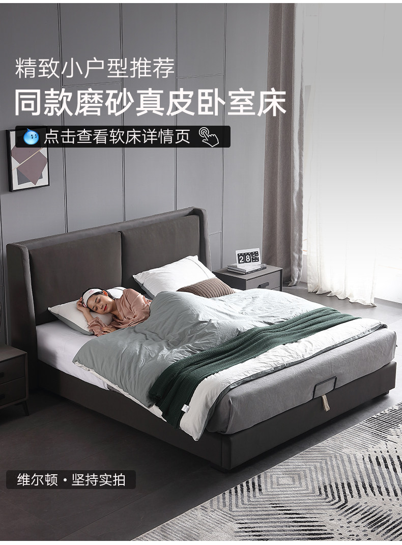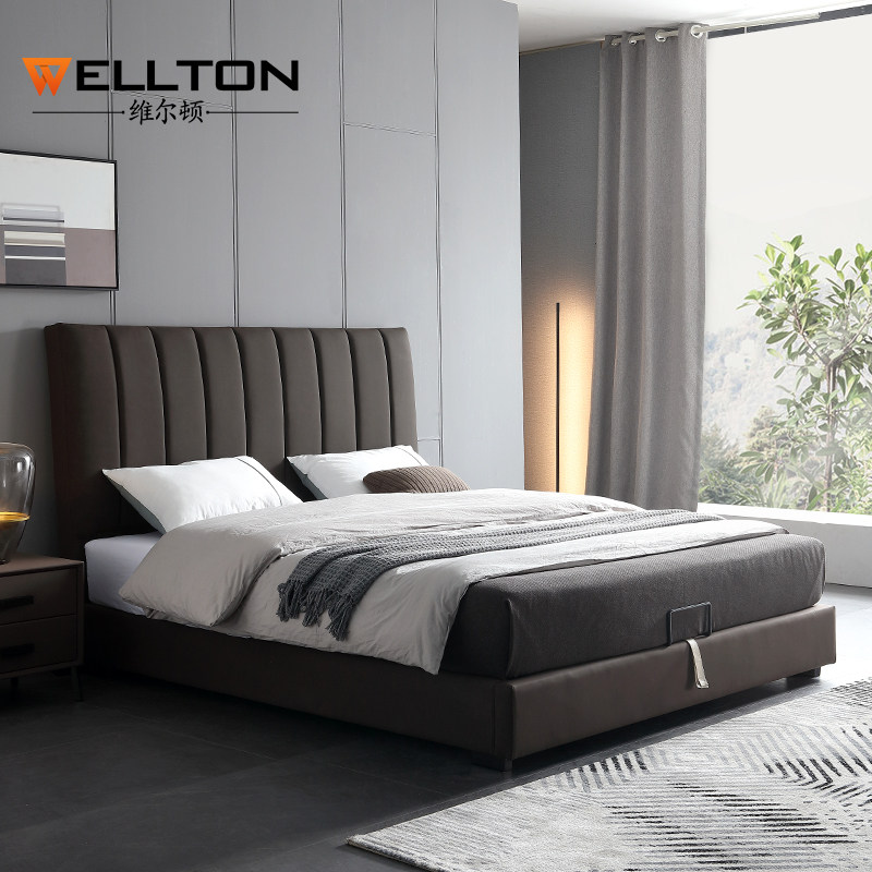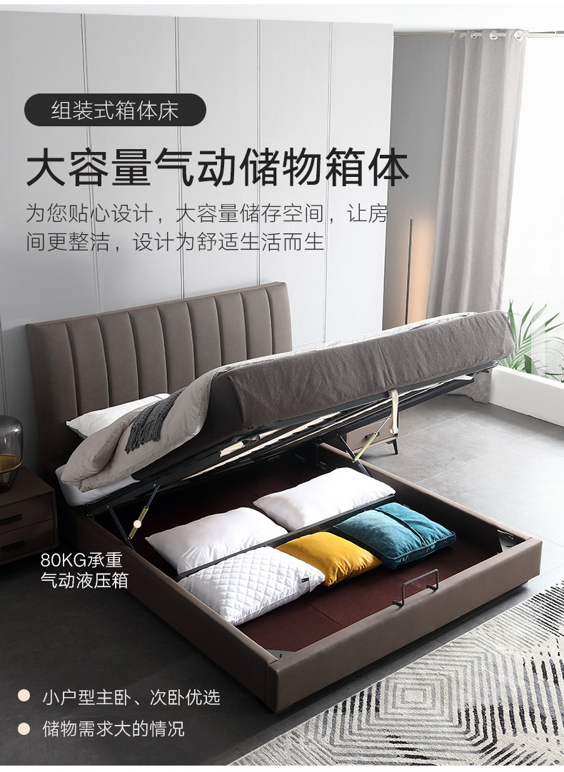 Северная легкая роскошная кожаная кровать простая презентация поколение Небольшая квартира ноутбук из натуральной кожи Кровать 1,8 метра два человека Qiqian высокая Кровать для хранения коробки