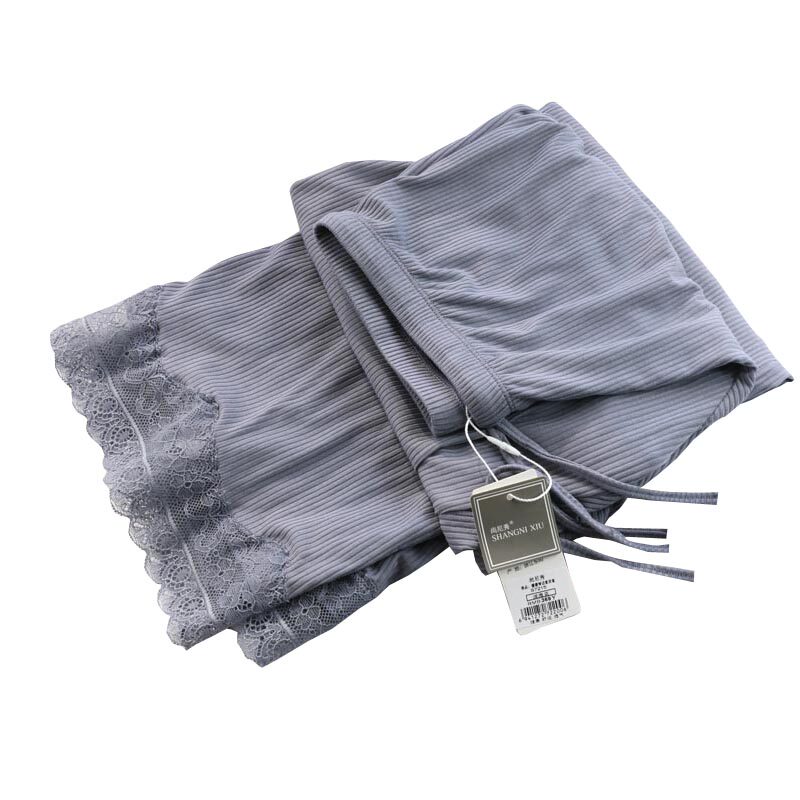 Shang Ni Xiu 7215 Шаньдун Главная Лидер кружева поколение Темный полосатый Свободные широкие ноги кондиционированные штаны