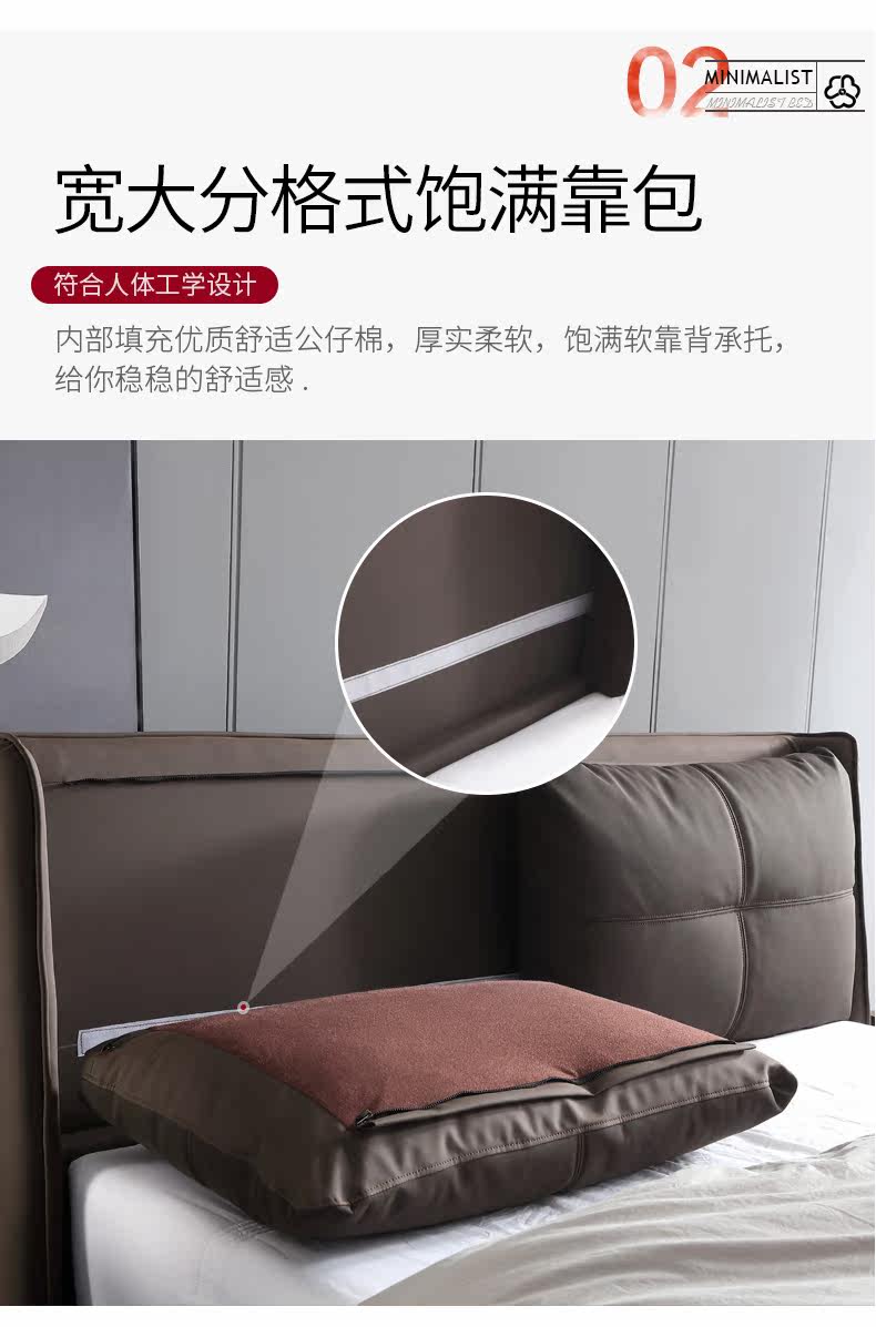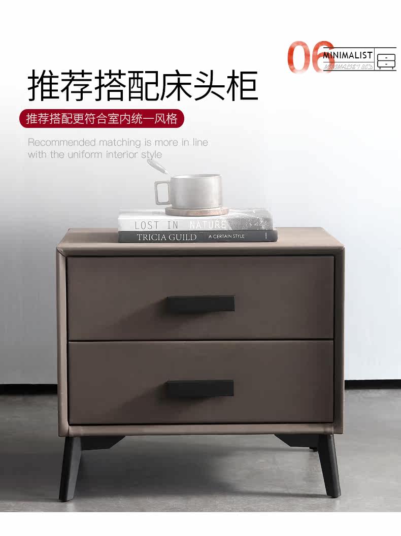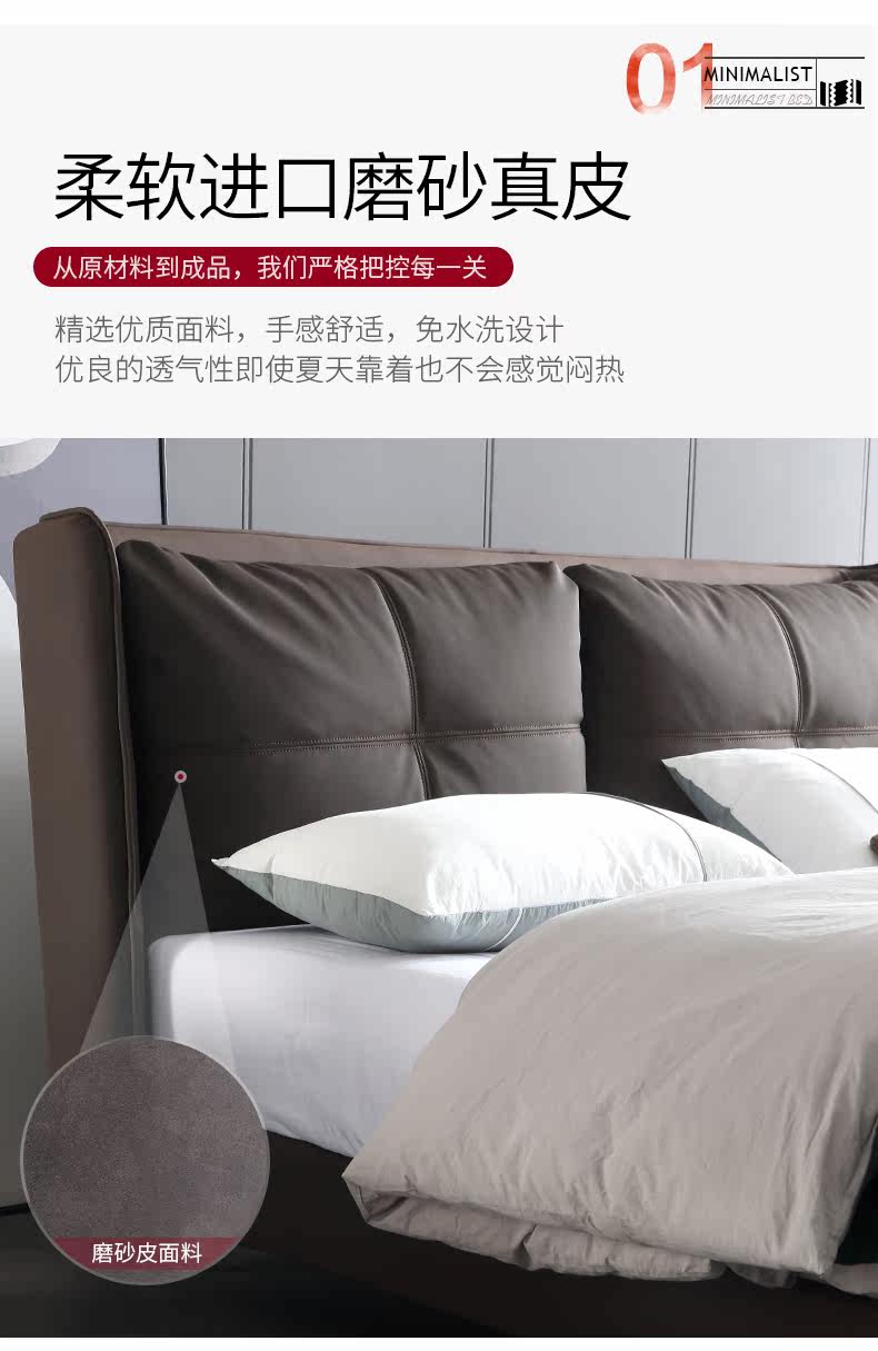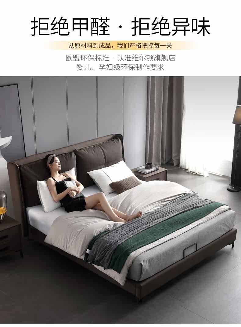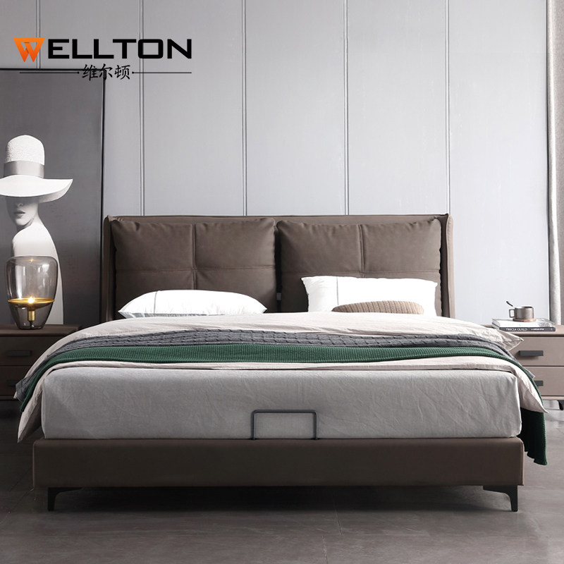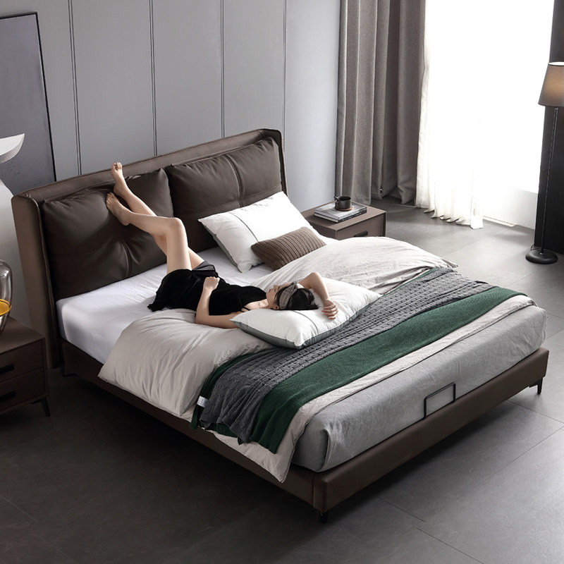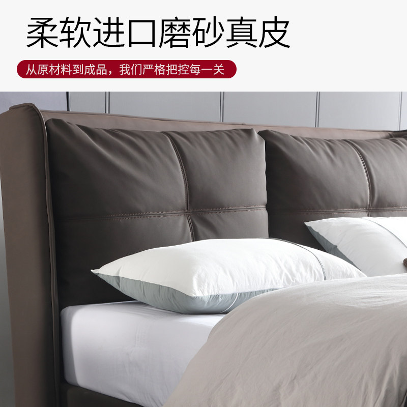 Итальянский минимализм ноутбук из натуральной кожи Кровать простая поколение Малогабаритная квартира мягкая пакет Двуспальная кожаная кровать 1.8м свадебная кровать в главной спальне