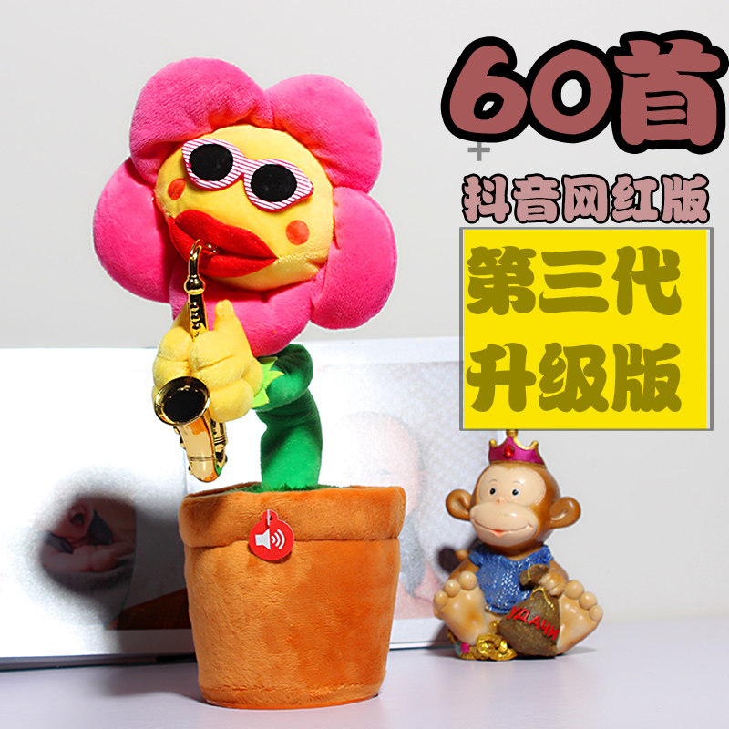 Очаровательная цветочная девушка подсолнечника будет петь и танцевать, дуть саксофонная сеть подсолнечника красный забавный детские Цветочная игрушка