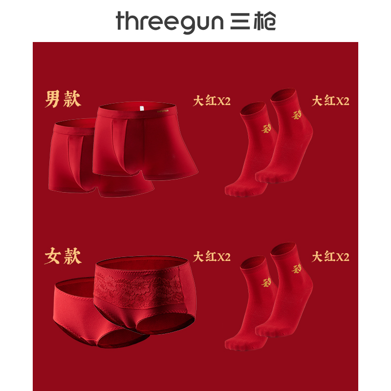 Три выстрела мужские и женские Весна и лето чистый хлопок Трусики подарочной коробке насыщенно-красный 色 吉 内 内 хлопок Носок подарочной коробке красный носок