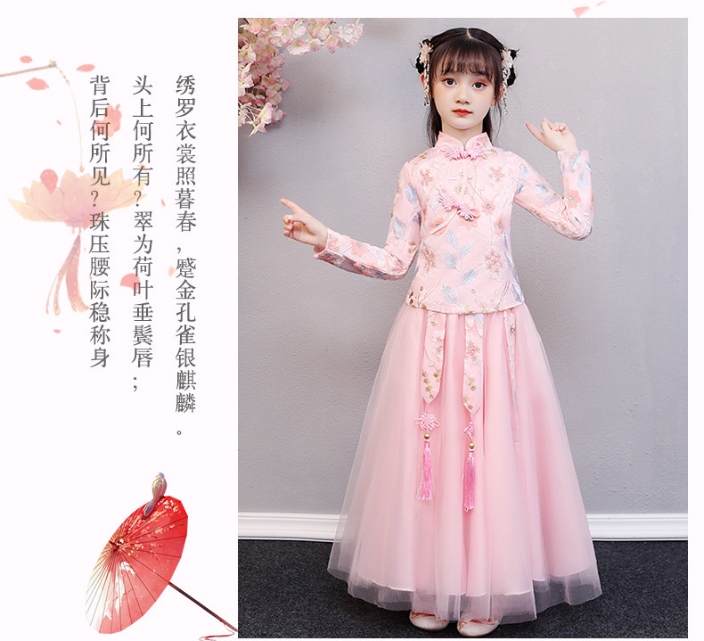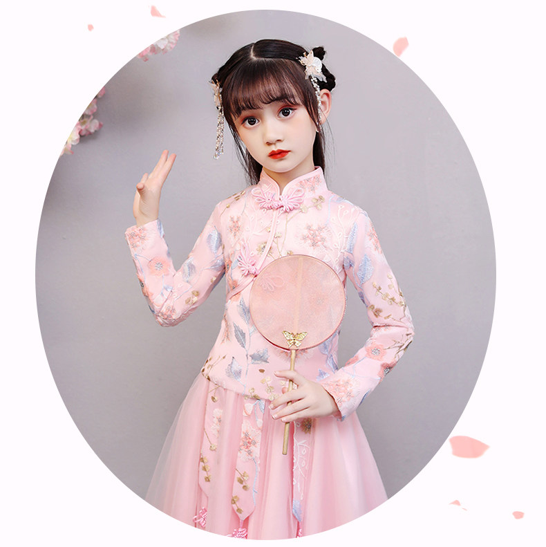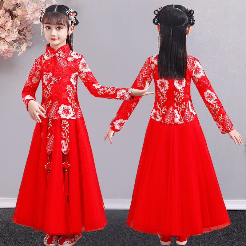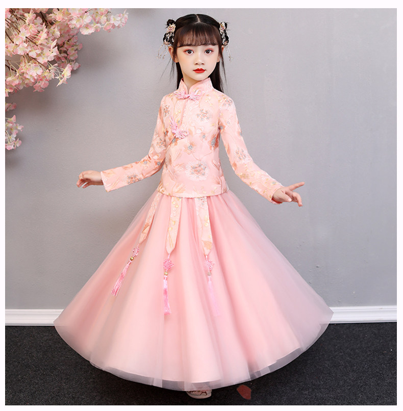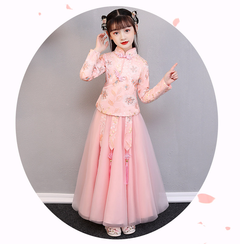 Hanfu на девочку зимний длинный рукав Зимнее платье детские Династия Tang Новогодний Должний Комплекс Super Бессмертный осень-зима Китайское платье ветра зима