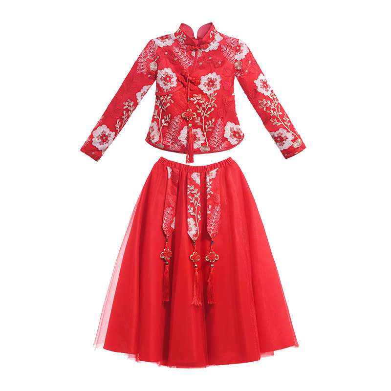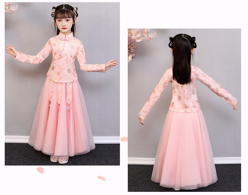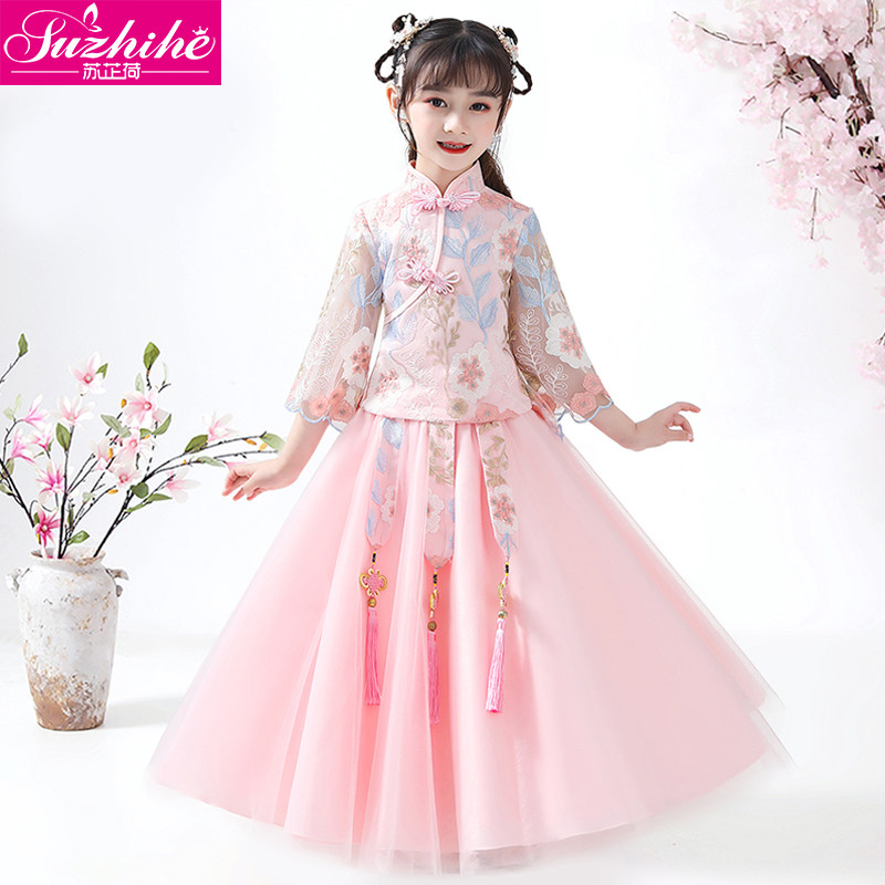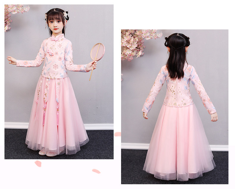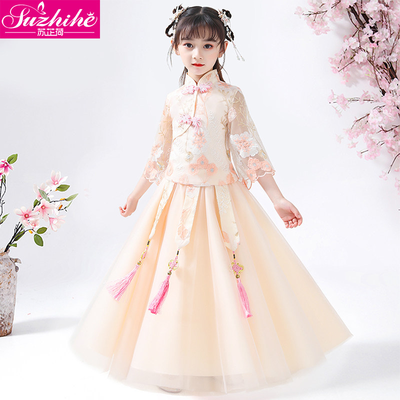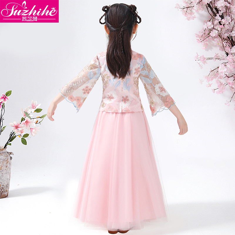 Hanfu на девочку зимний длинный рукав Зимнее платье детские Династия Tang Новогодний Должний Комплекс Super Бессмертный осень-зима Китайское платье ветра зима