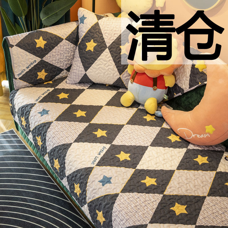Клетчатый Nordic Minimalist чистый хлопок Диван Pad. нескользящие Тканевая подушка четыре сезона универсальной гостиной
