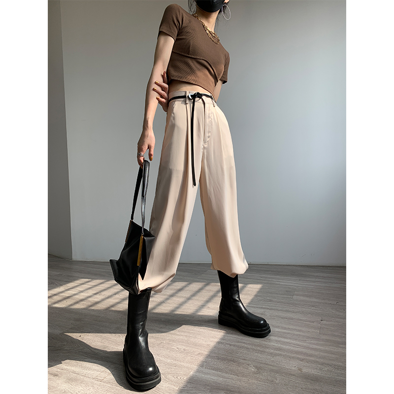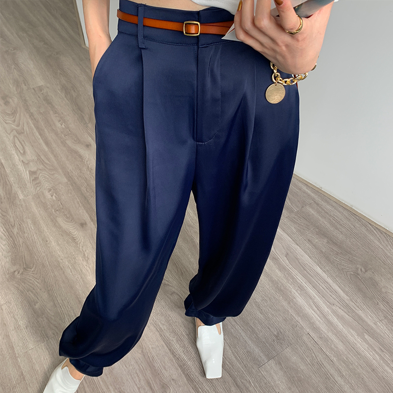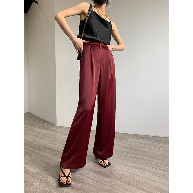 Appllll Air Acetate широкие ноги высокая Талия свобода европейский покрой Атлас прямые Брюки женщины
