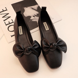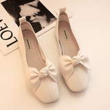 На плоской подошве Квадратная голова туфли Женская бабушка для бабушки 2020 весна и лето светло Желтая бобовая обувь бантики Футбол