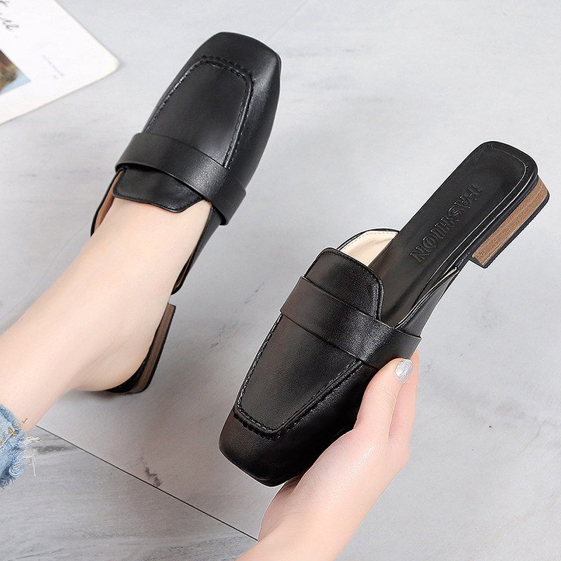 Пакет Головной половину тапки женский широкий каблук Мелкий корейская версия Ins Tide 2021 весна новая коллекция Полуподержка туфли Женский дикий