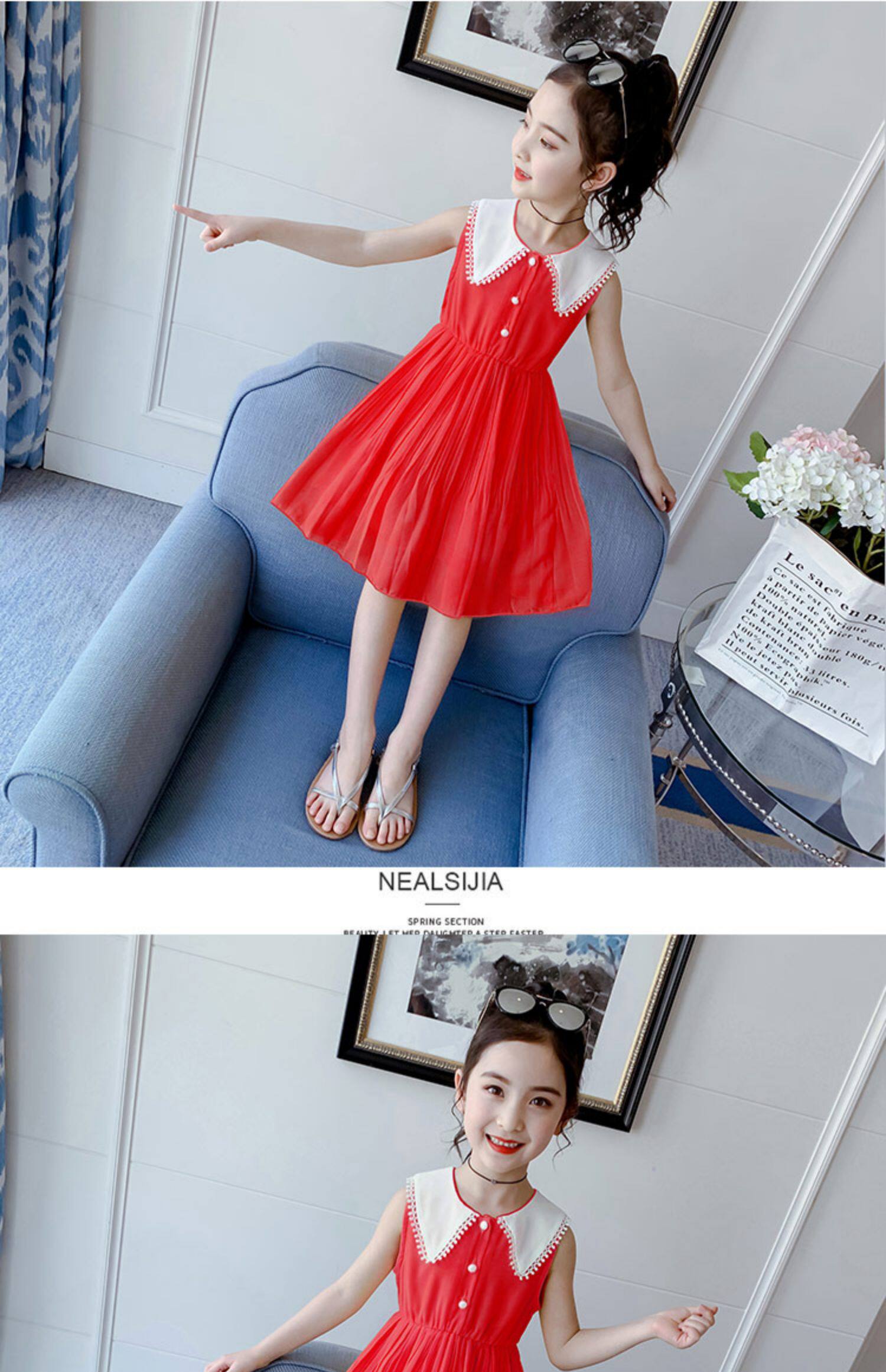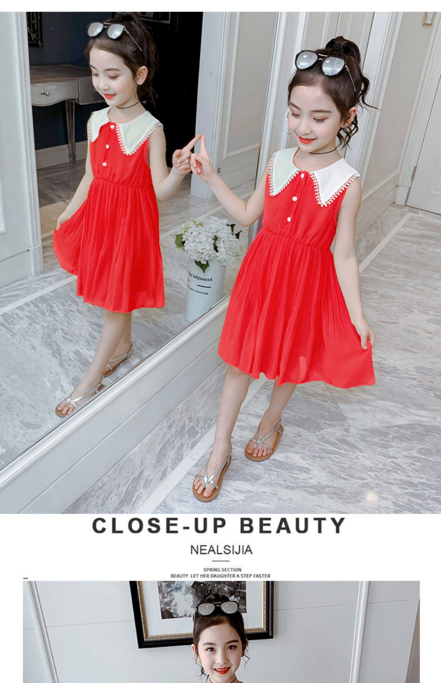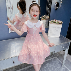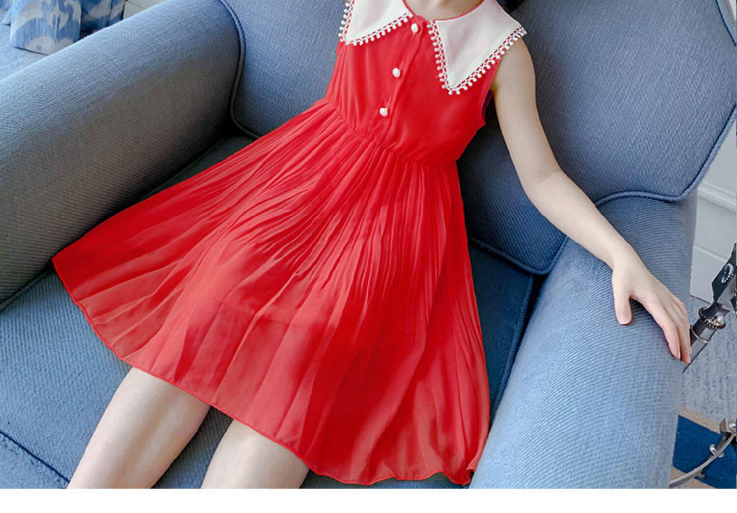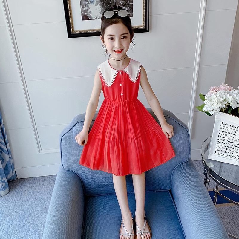На девочку Платье лето 2022. новая коллекция детские сеть красный шифон детское Юбка девушка лето для маленькой принцессы юбка