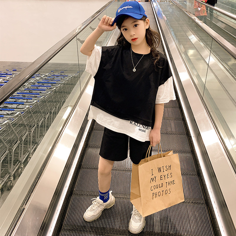 На девочку Летнее платье комплект 2022 новая коллекция корейская версия Китайское детское движение для отдыха набор детские Две части подделки наборы