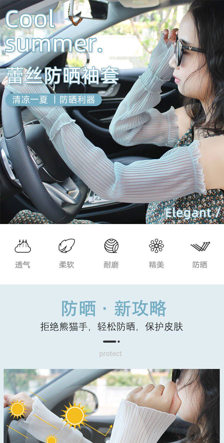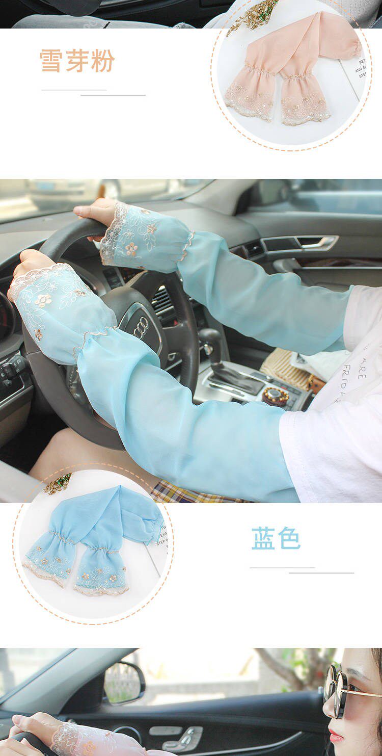 Солнцезащитный крем перчатки женский длинный фасон Кружевная рукав стиль Летний анти-УФ-рукав ледяной рукав навес вождения ледяной шелковый рукав рукава