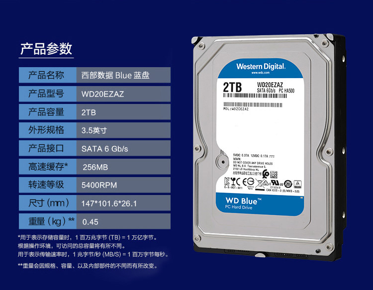 WD / Western Data 2TB синий Cap / Treble. красный Блюдо / бизнес-дисковый офис Домашняя корпоративное хранение NAS Disk