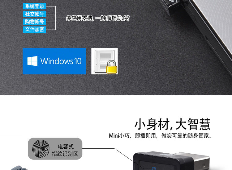 USB-палец принт Определить Войти Win10 Ноутбук Пароль Разблокировка Windows Hello Шифрование