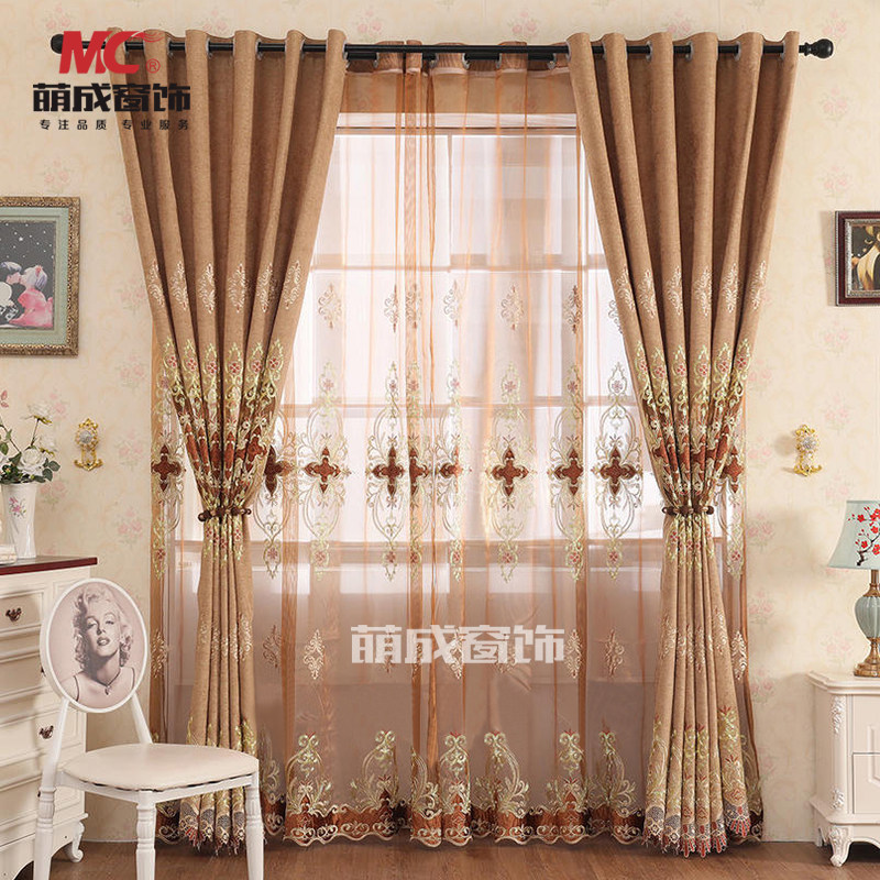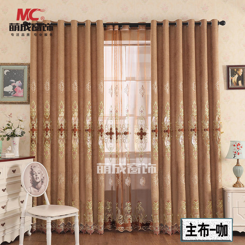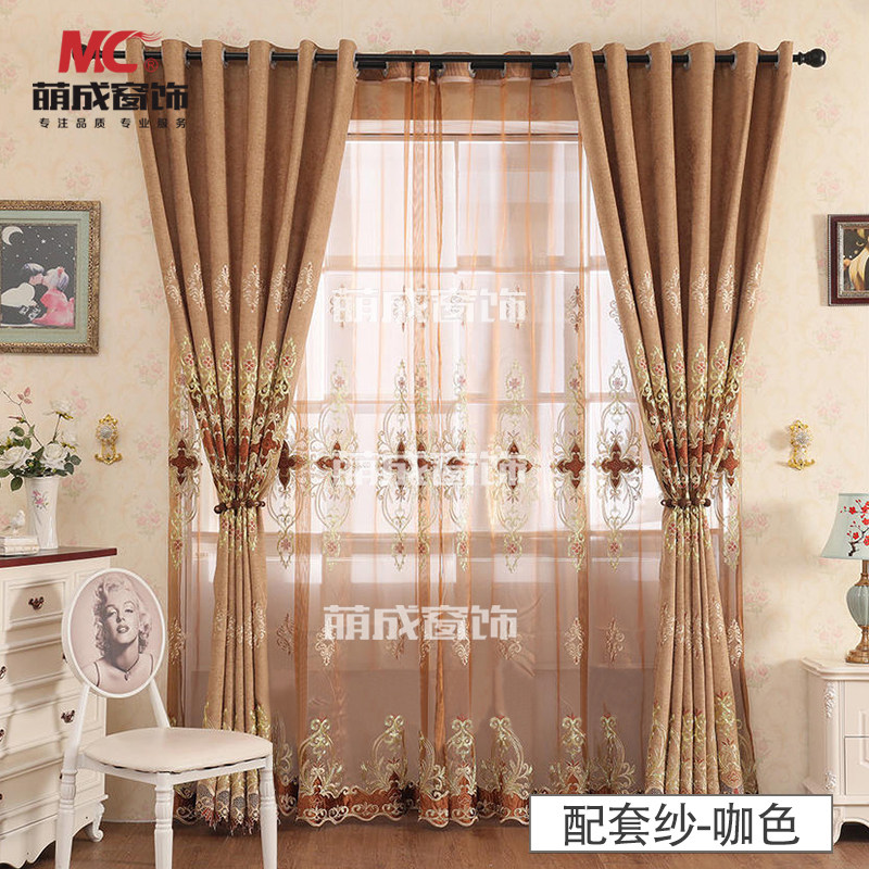 Становится окно Декоративные цветы на обеих сторонах раствора раствора Schnauil(кофе, синий )Спальня гостиной окно Занавес